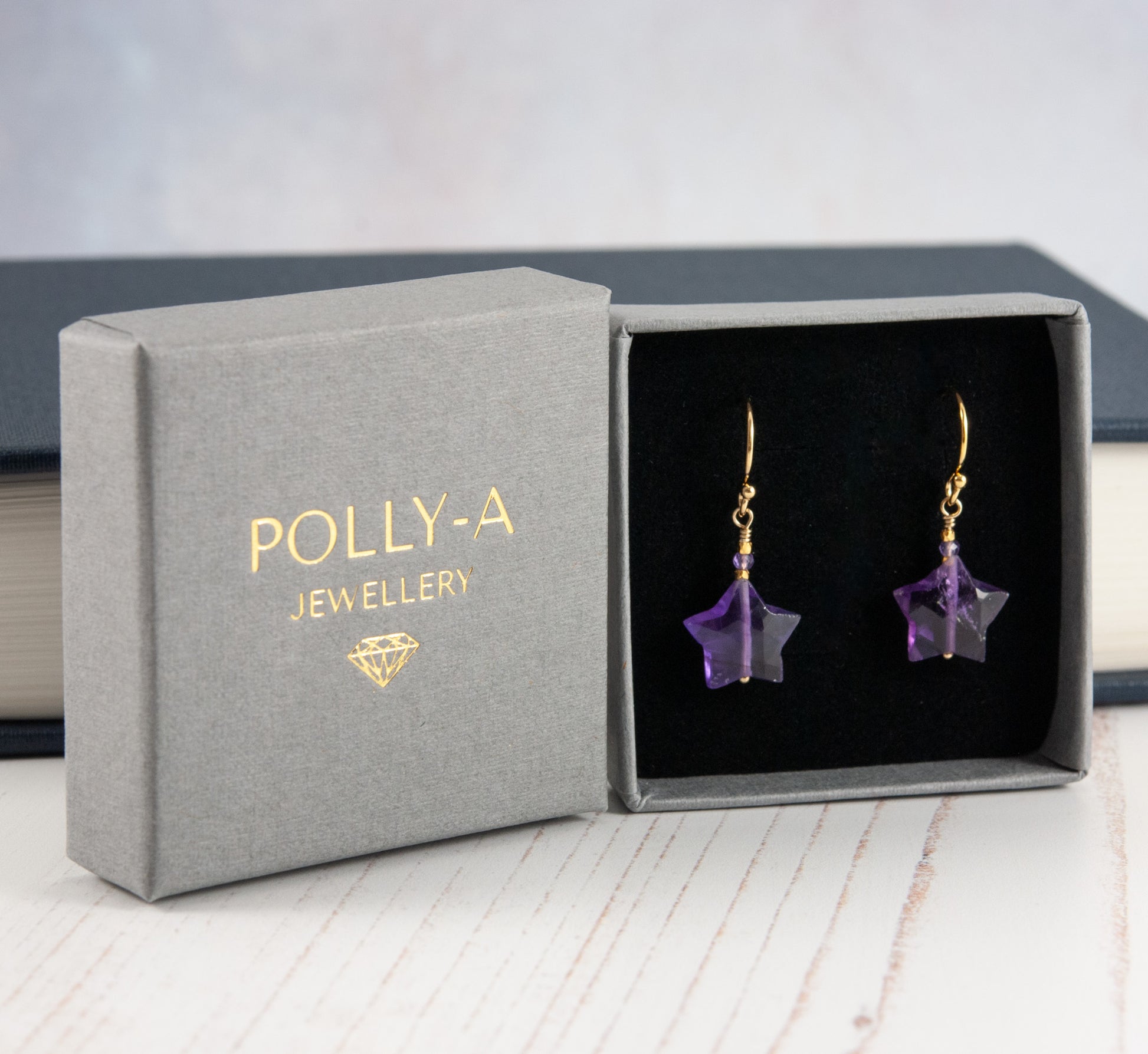 The Amethyst stars are faceted for brilliant sparkle, and are a slightly rustic hand cut, so please allow for some variation, this is part of their natural and individual beauty.