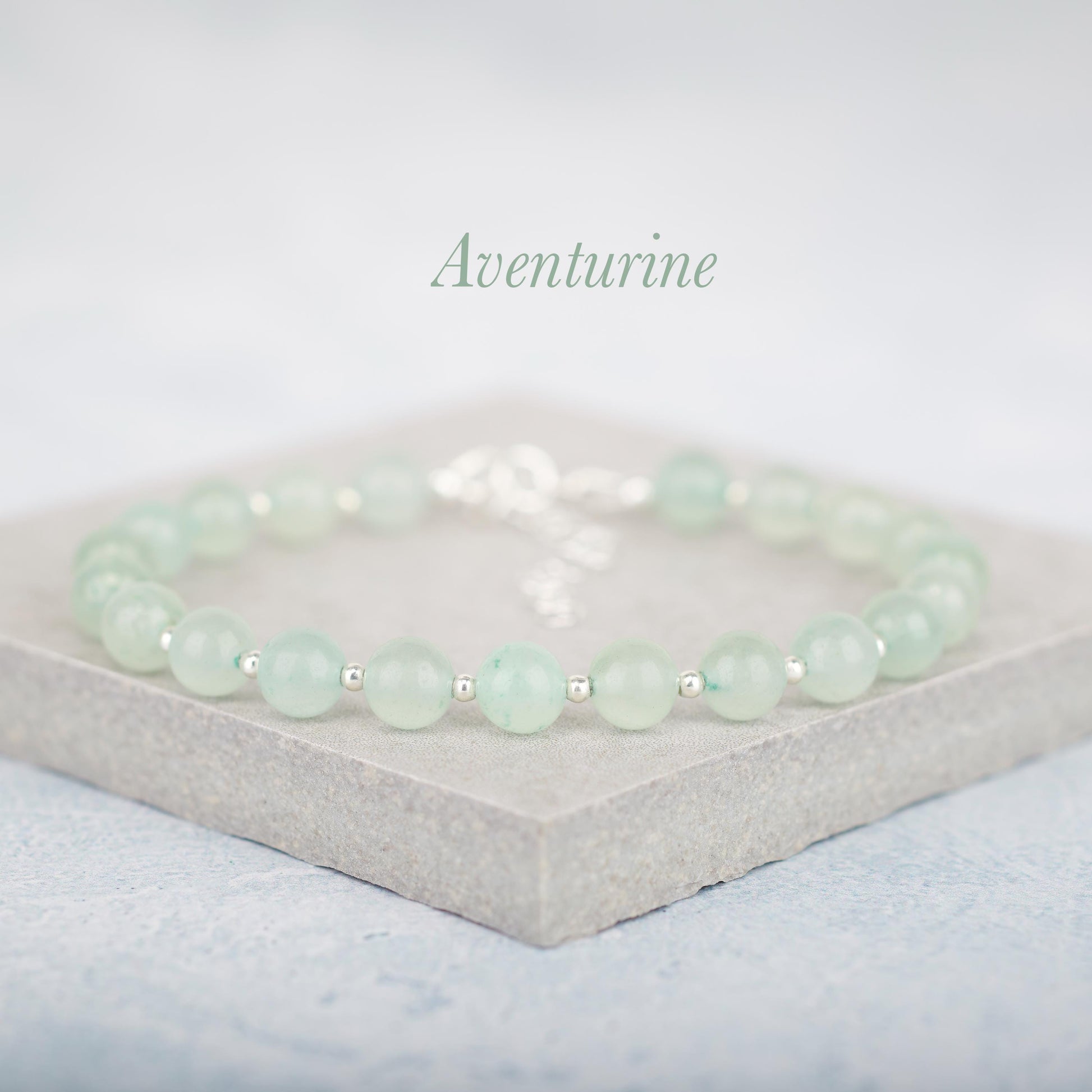 Beautiful soft green natural Aventurine gemstone beads are interspersed with tiny Sterling Silver or Gold Filled beads in this simple, elegant bracelet.