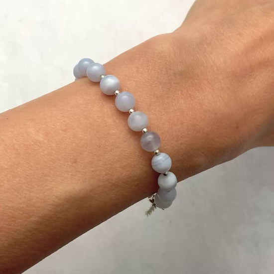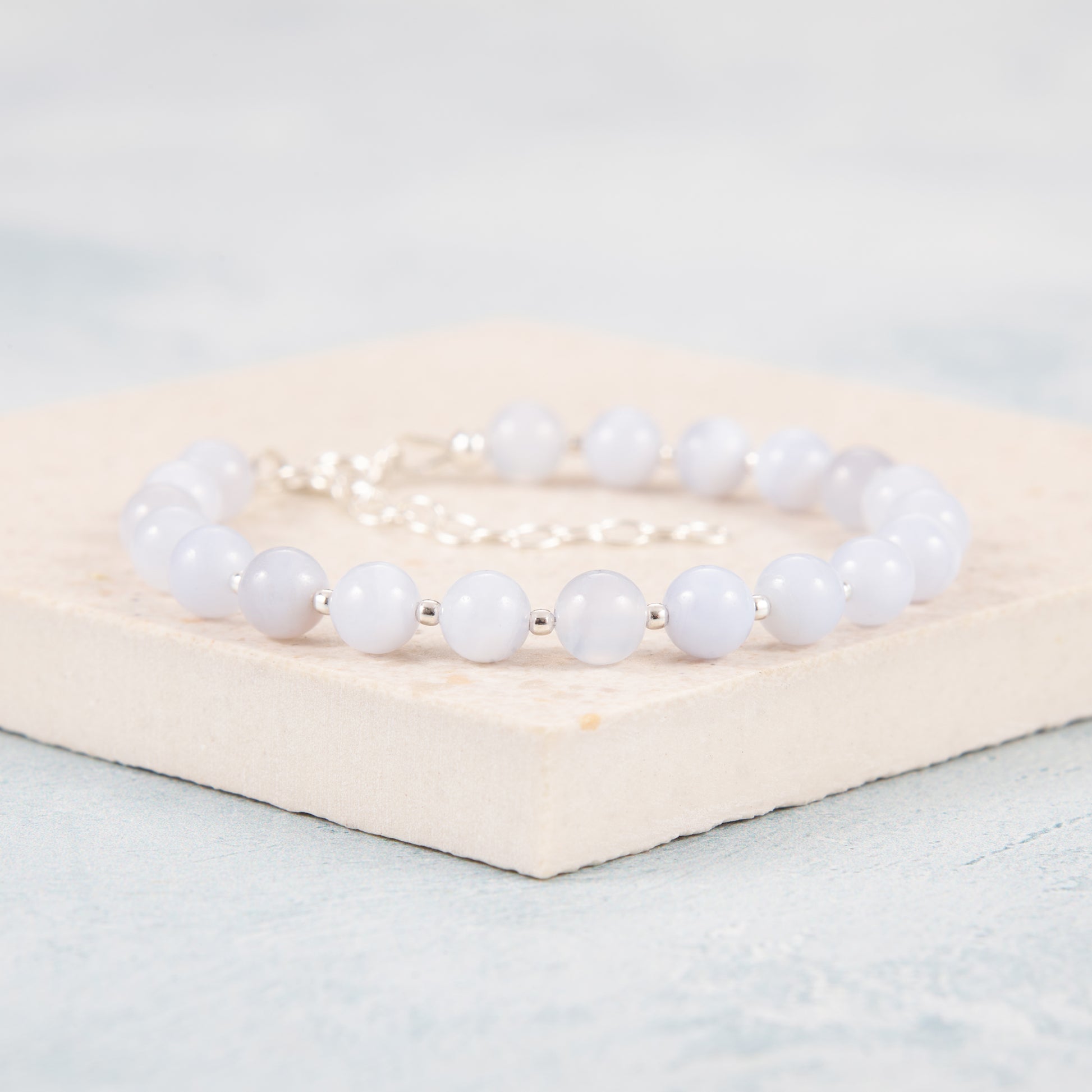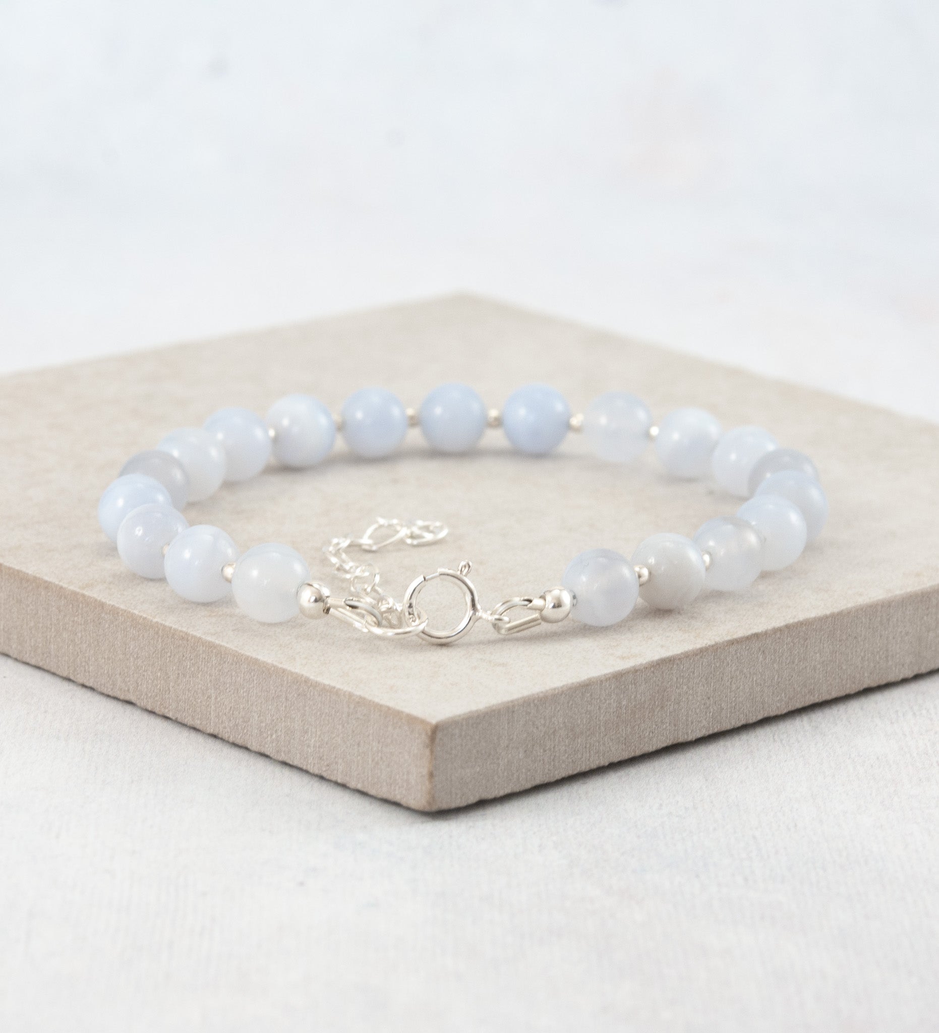 Blue Lace Agate gemstone beads in a beautiful soft ethereal pale blue colour are interspersed with your choice of 925 Sterling Silver or 14K Gold Filled beads in this simple and pretty bracelet.