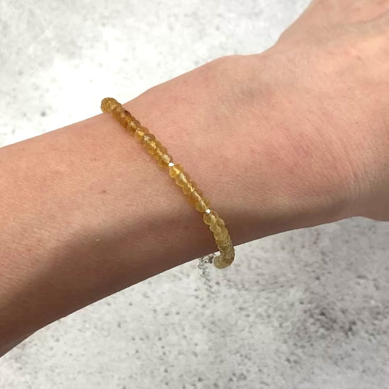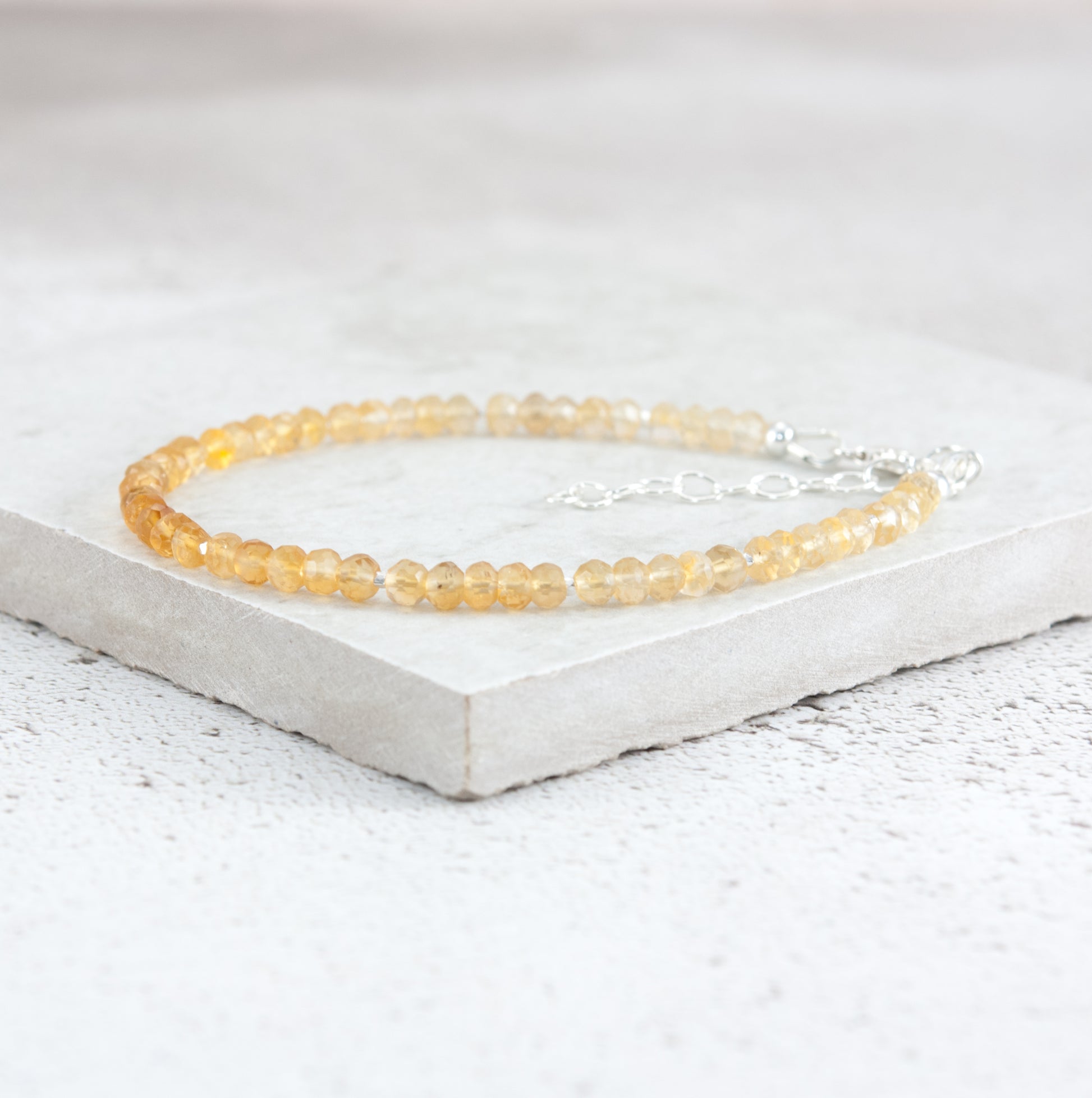 Beautiful yellow Citrine gemstone beads are arranged in ombre / shaded style and interspersed with faceted 925 Sterling Silver or Gold Vermeil beads in this joyful and elegant bracelet, like a little ray of sunshine on your wrist.