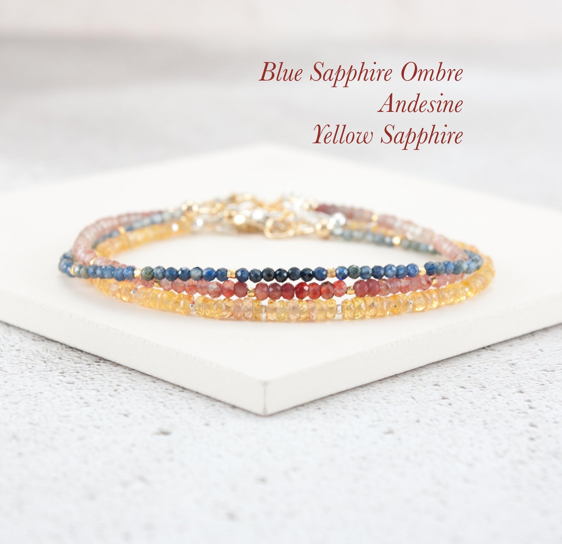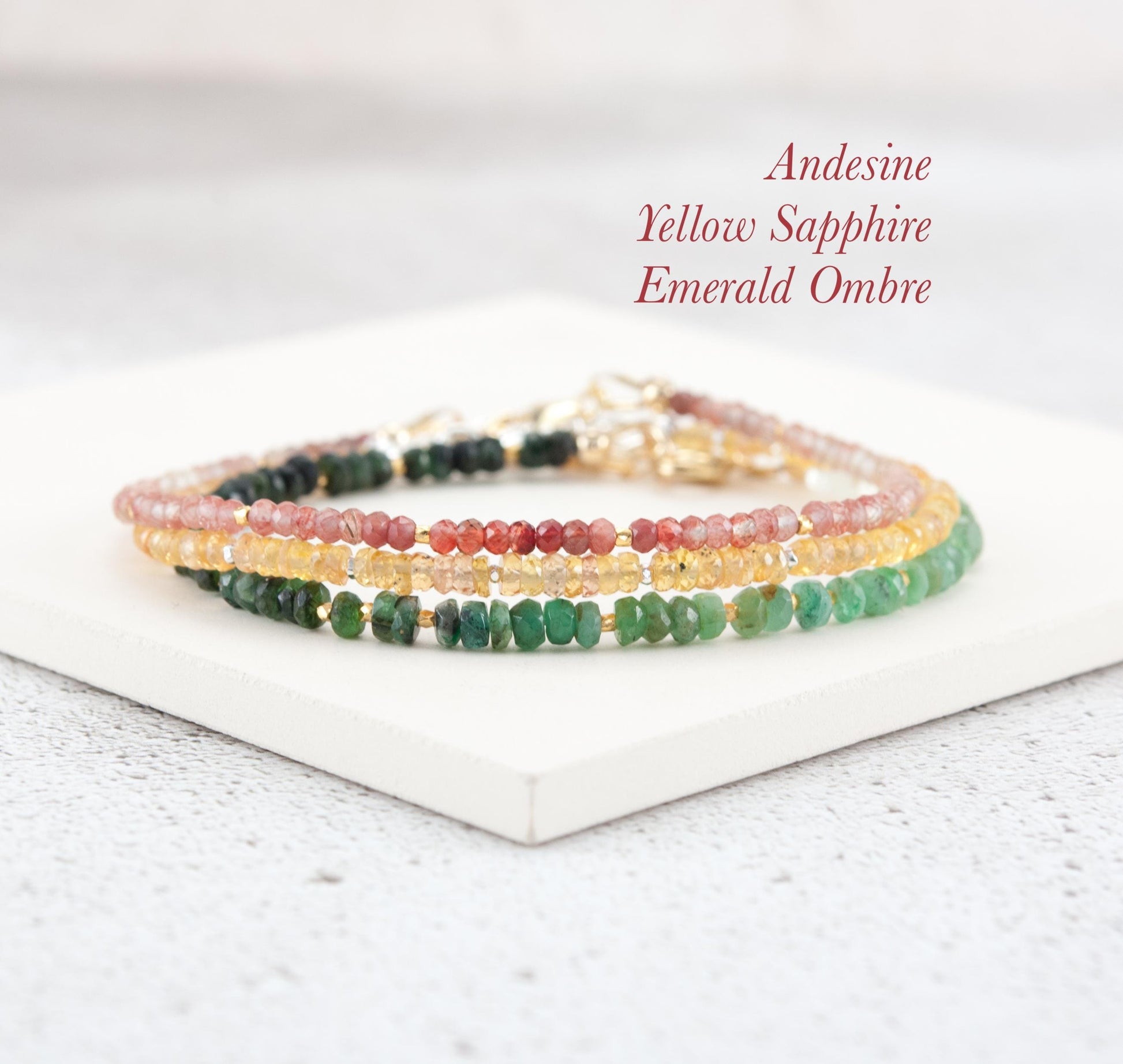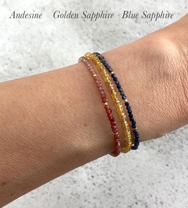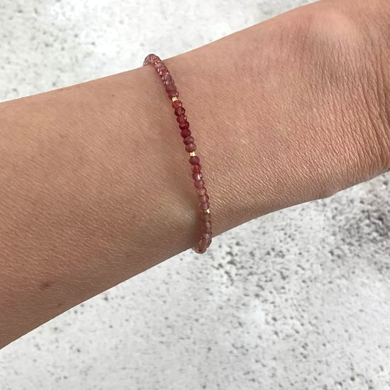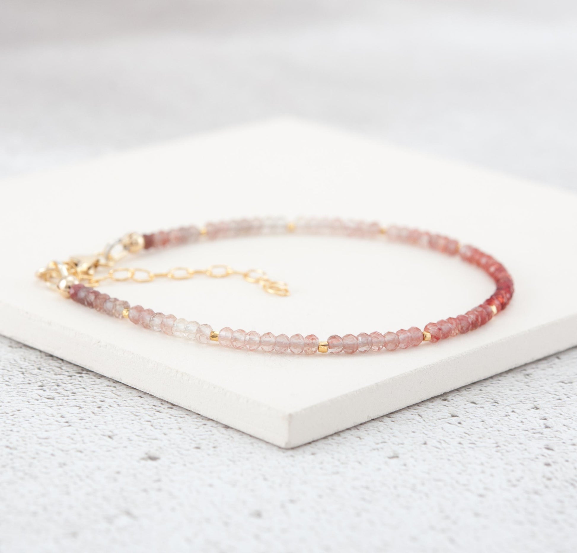 Beautiful, natural rare Andesine gemstone beads in a range of warm, earthy red tones combine with your choice of tiny Gold Vermeil or Sterling Silver beads in this very dainty, unusual and elegant bracelet.