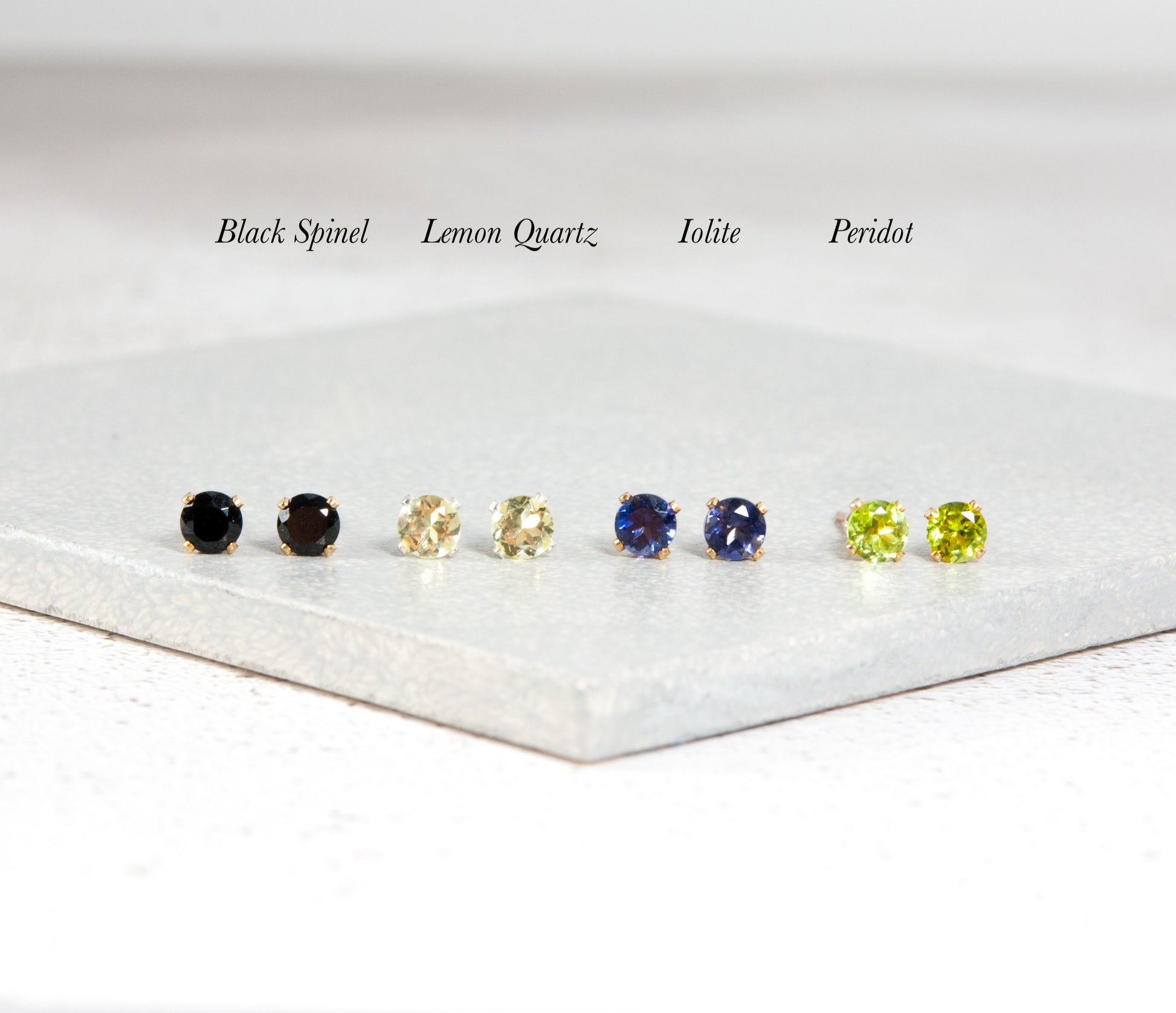Glossy, shiny black 4mm genuine Black Spinel gemstones sparkle within 925 Sterling Silver or Gold Filled settings in these dainty little stud earrings. These little stones have been faceted for maximum sparkle. Minimalist, dainty and and so easy to wear as a favourite everyday pair.