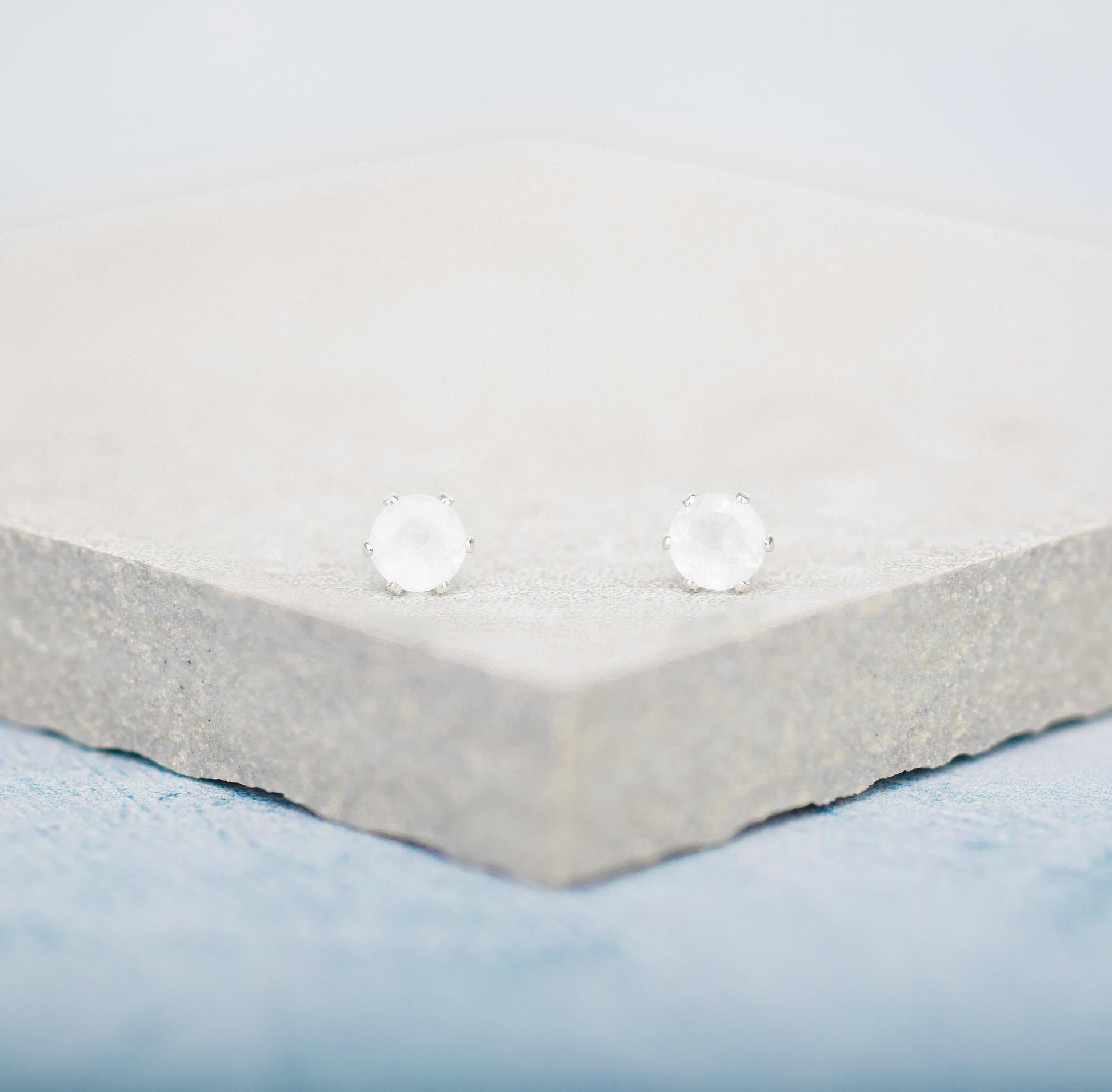 A very dainty pair of stud earrings featuring lovely genuine natural Chalcedony gemstones set in 925 Sterling Silver or 14k Gold Filled settings. These natural stones have been faceted for maximum brilliance and sparkle, and have a lovely semi-milky translucent quality, with very subtle pastel blue and pink tones which vary in different lighting conditions. Unlike much Chalcedony, these are completely natural and not dyed or treated. Pretty, dainty and delicate, and so easy to wear as a favourite everyday pair.