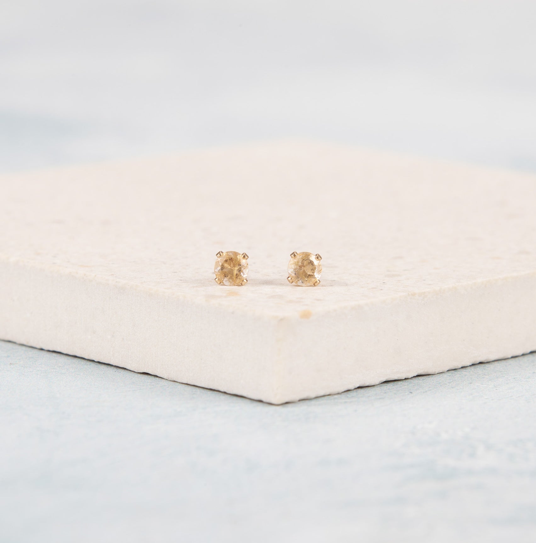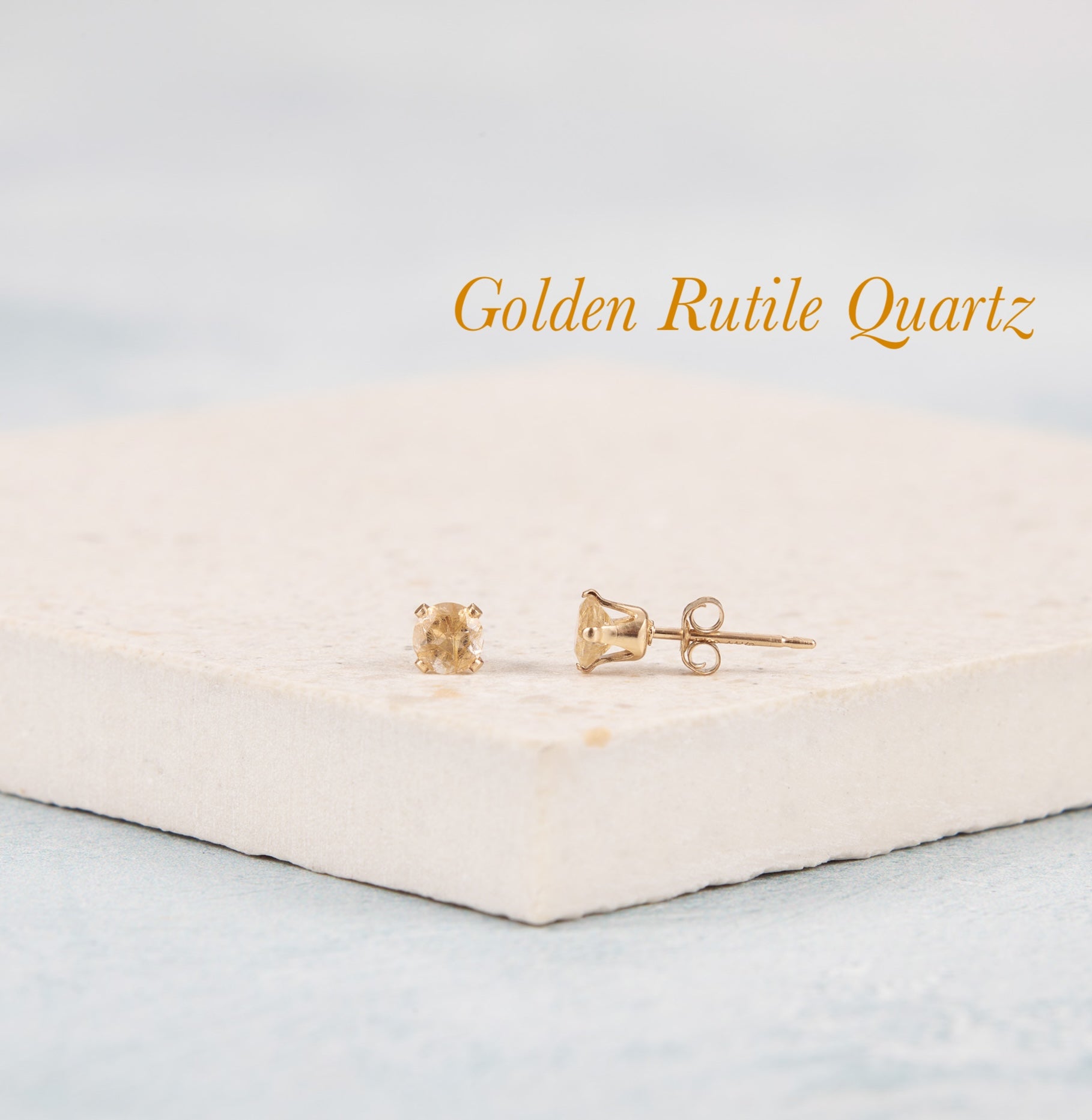 Dainty Golden Rutile Quartz Gemstone Stud Earrings