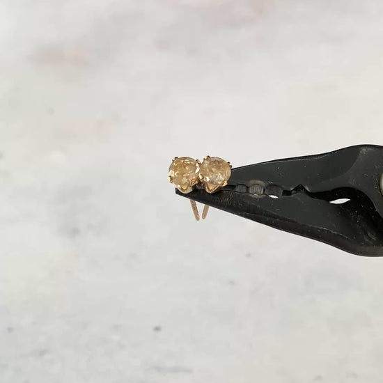A very dainty pair of stud earrings, featuring beautiful little Golden Rutile Quartz gemstones within 925 Sterling Silver or Gold Filled settings. Pretty, dainty and delicate, and so easy to wear as a favourite everyday pair. These stones are crystal clear, with the intriguing little golden hair-like inclusions for which this unusual gemstone is treasured.