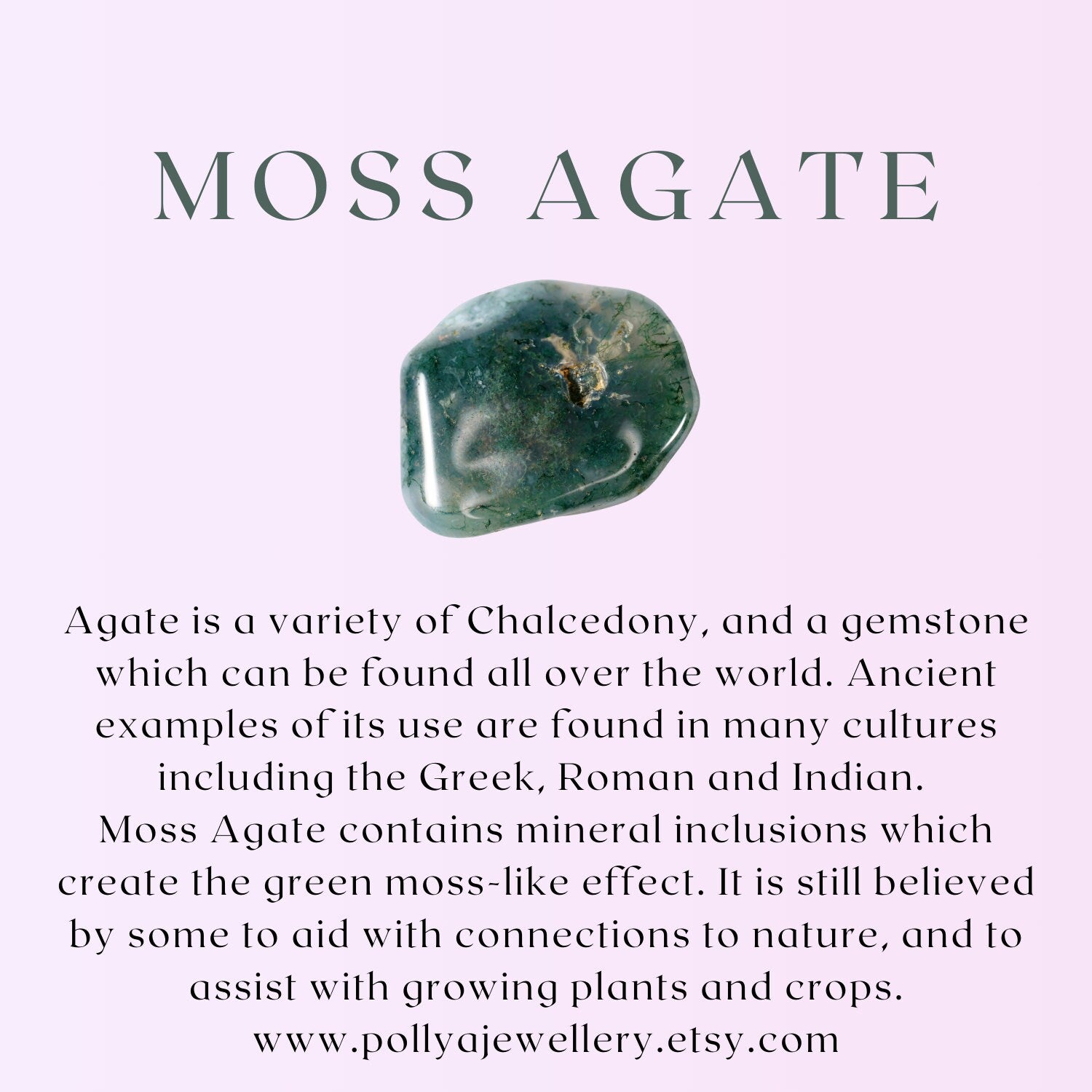 Moss Agate is a stunning natural gemstone, with translucent colours ranging from clear to white to dark forest green, and showing beautiful mossy inclusions. Each bead has much interest, and is unique so you are guaranteed a one of a kind piece.