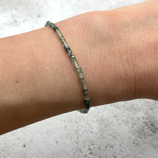 Dainty Green Moss Agate Gemstone Tube Bead Bracelet