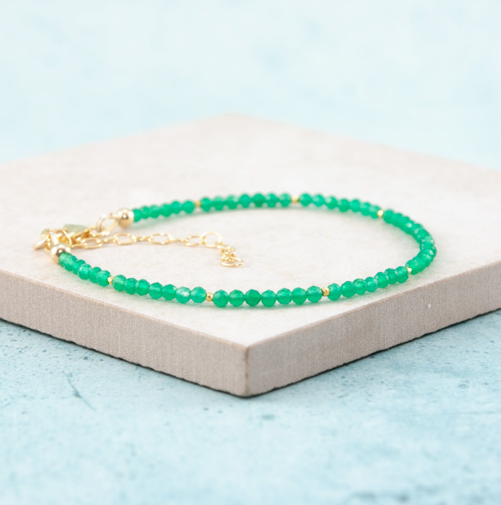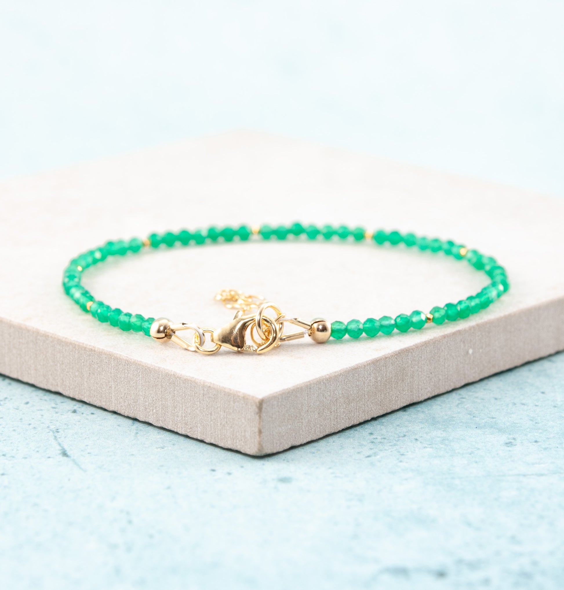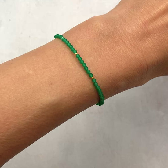 Vibrant little Green Onyx gemstones are micro faceted for maximum sparkle and interspersed with your choice of tiny Gold Vermeil or 925 Sterling Silver beads in this pretty and striking little bracelet.