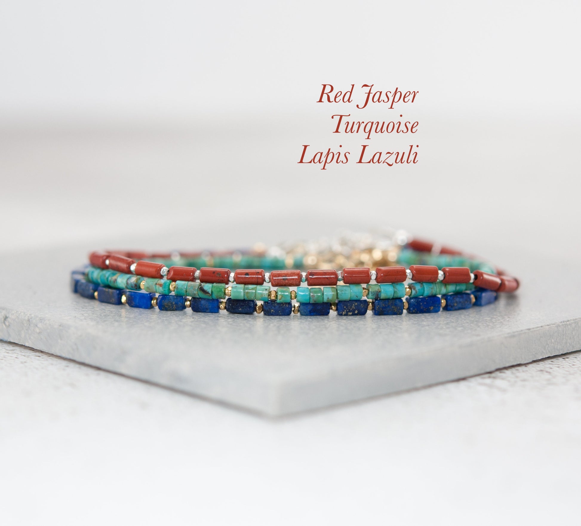 The clasp, findings and extension chain are all solid 925 Sterling Silver or 14k Gold Filled, and the beads are strung on very fine and flexible but strong jewellery wire, making the bracelet dainty in size, but strong and durable.