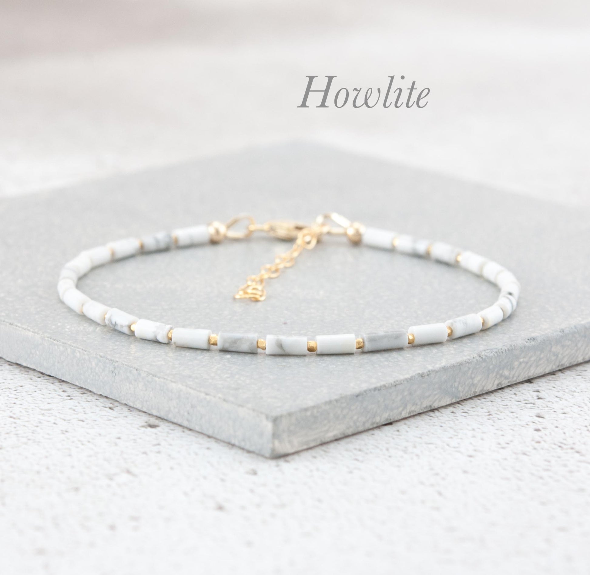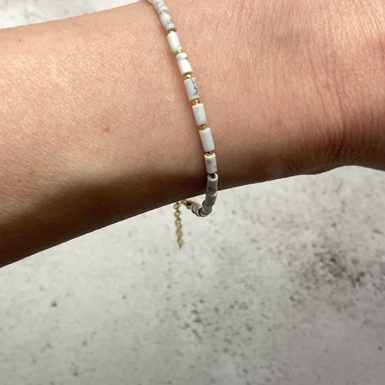Dainty Howlite Gemstone Tube Bead Bracelet