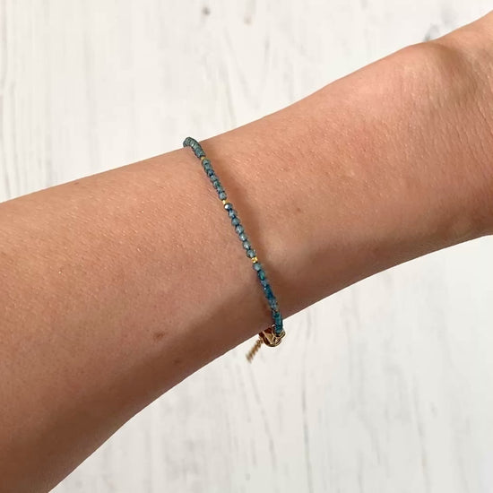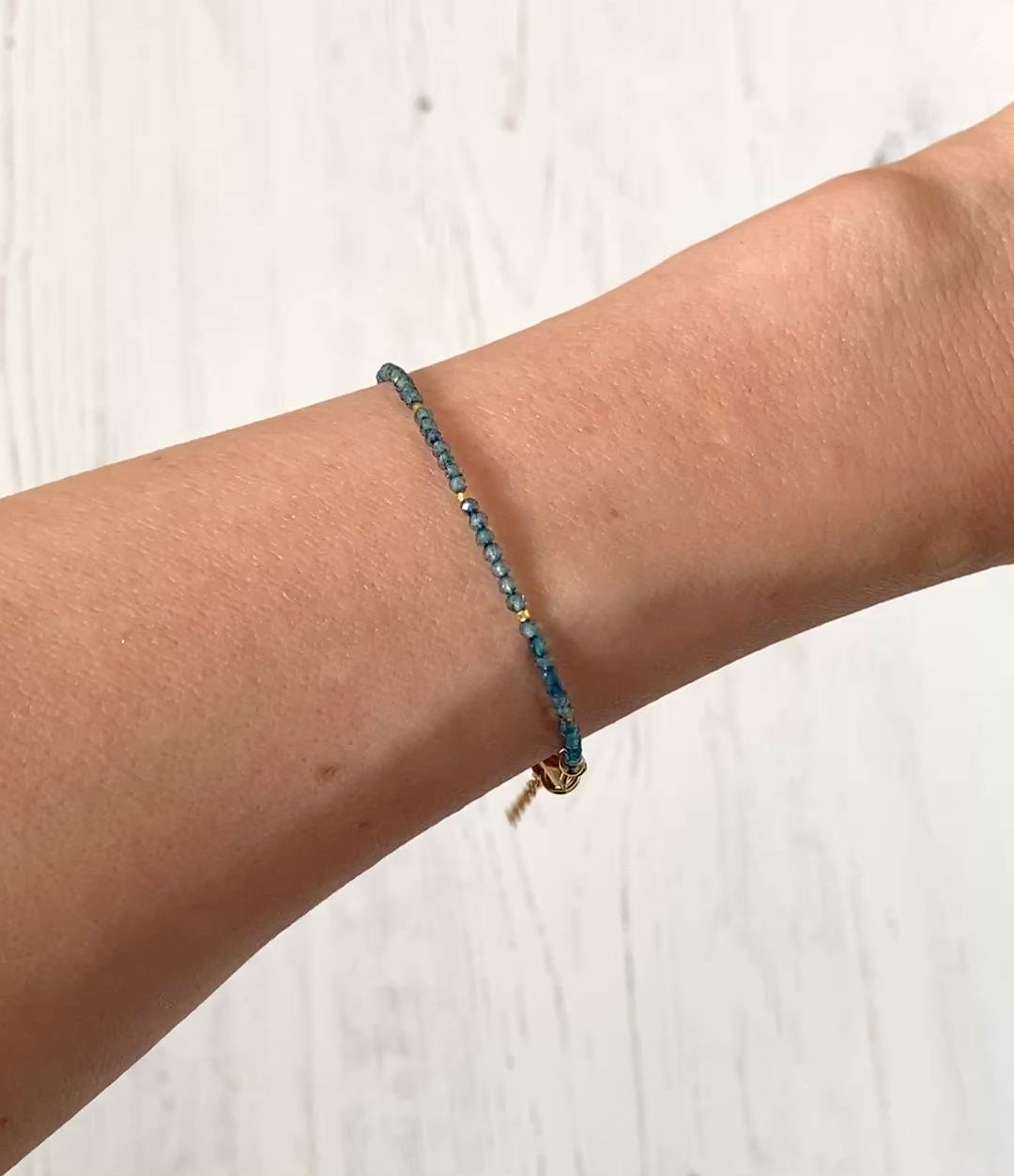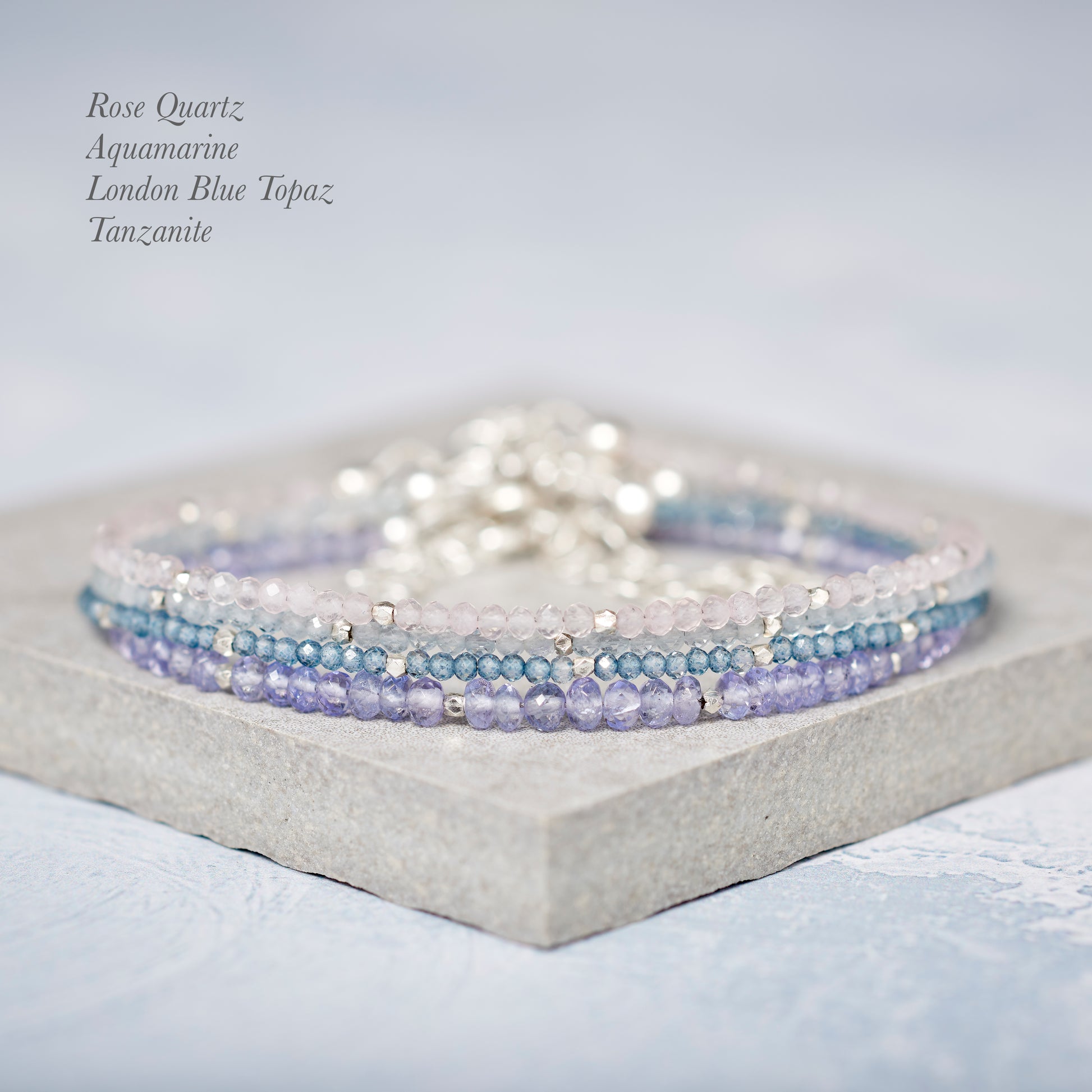 Tiny Topaz gemstones in a micro faceted cut for maximum sparkle are interspersed with your choice of Gold Vermeil or 925 Sterling Silver beads in this very slender, elegant little bracelet. Completely natural London Blue Topaz is extremely rare; these stones are very high quality (AAA Grade) coated White Topaz, with a Rhodium layer for longevity.