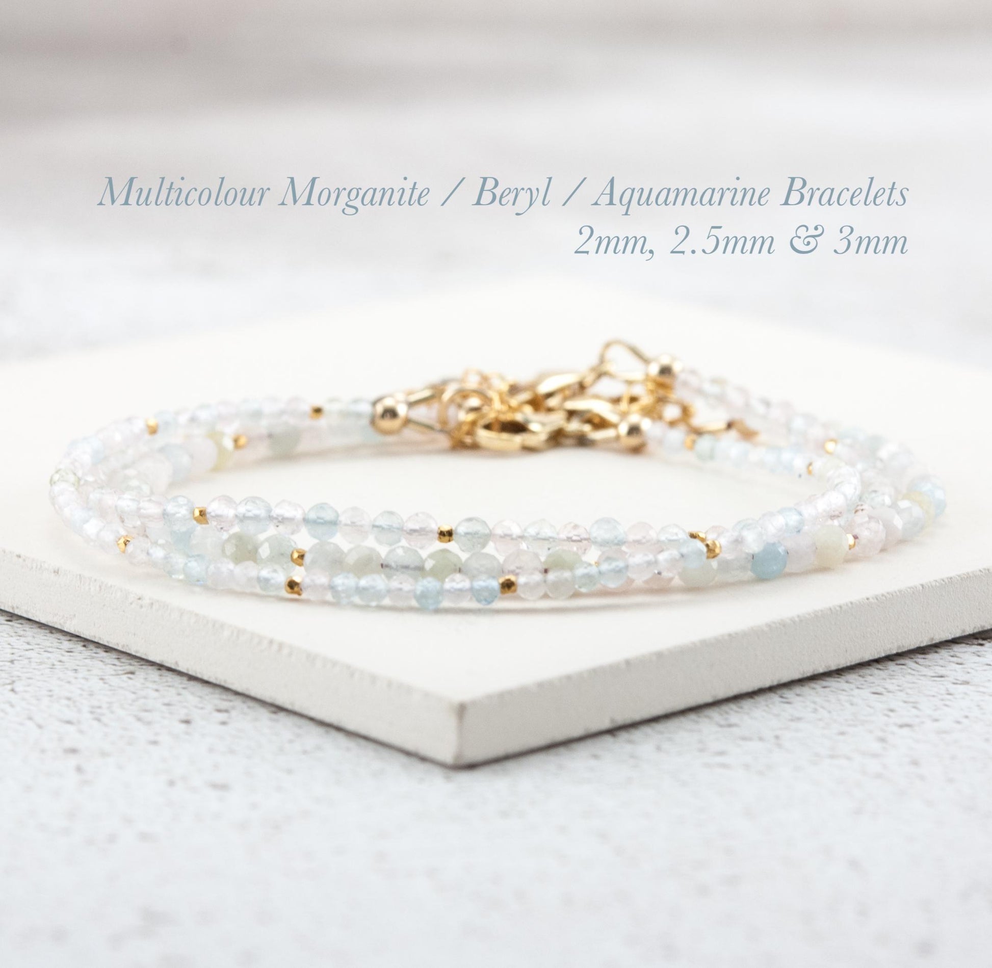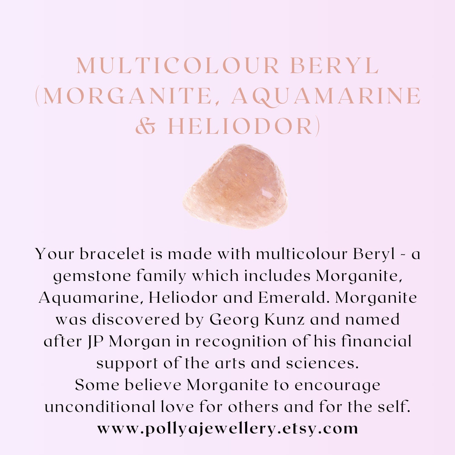 Dainty Multicolour Morganite (Beryl) Gemstone Bracelet (3mm)