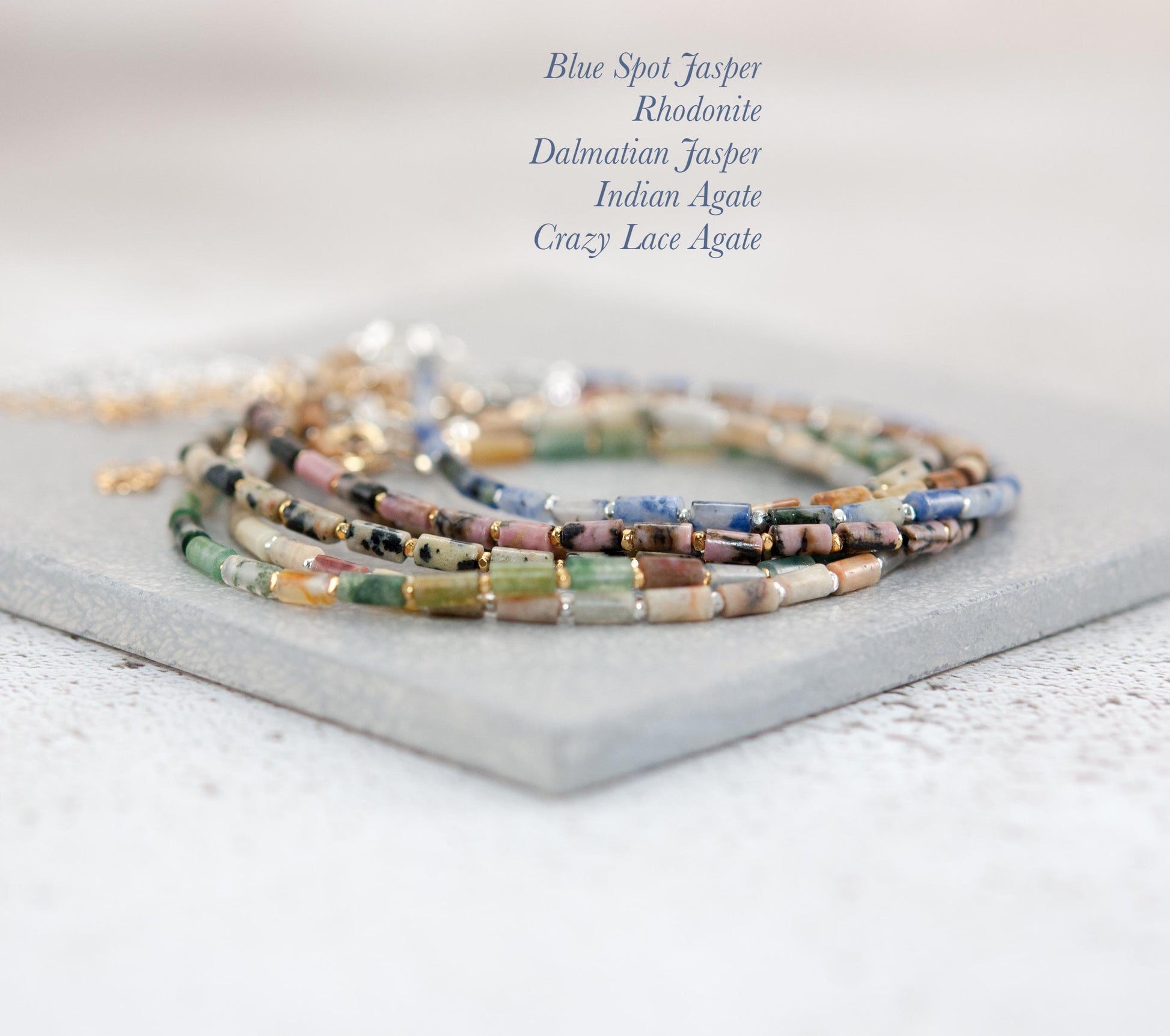 The clasp, findings and extension chain are all solid 925 Sterling Silver or 14k Gold Filled, and the beads are strung on very fine and flexible but strong jewellery wire, making the bracelet dainty in size, but strong and durable.