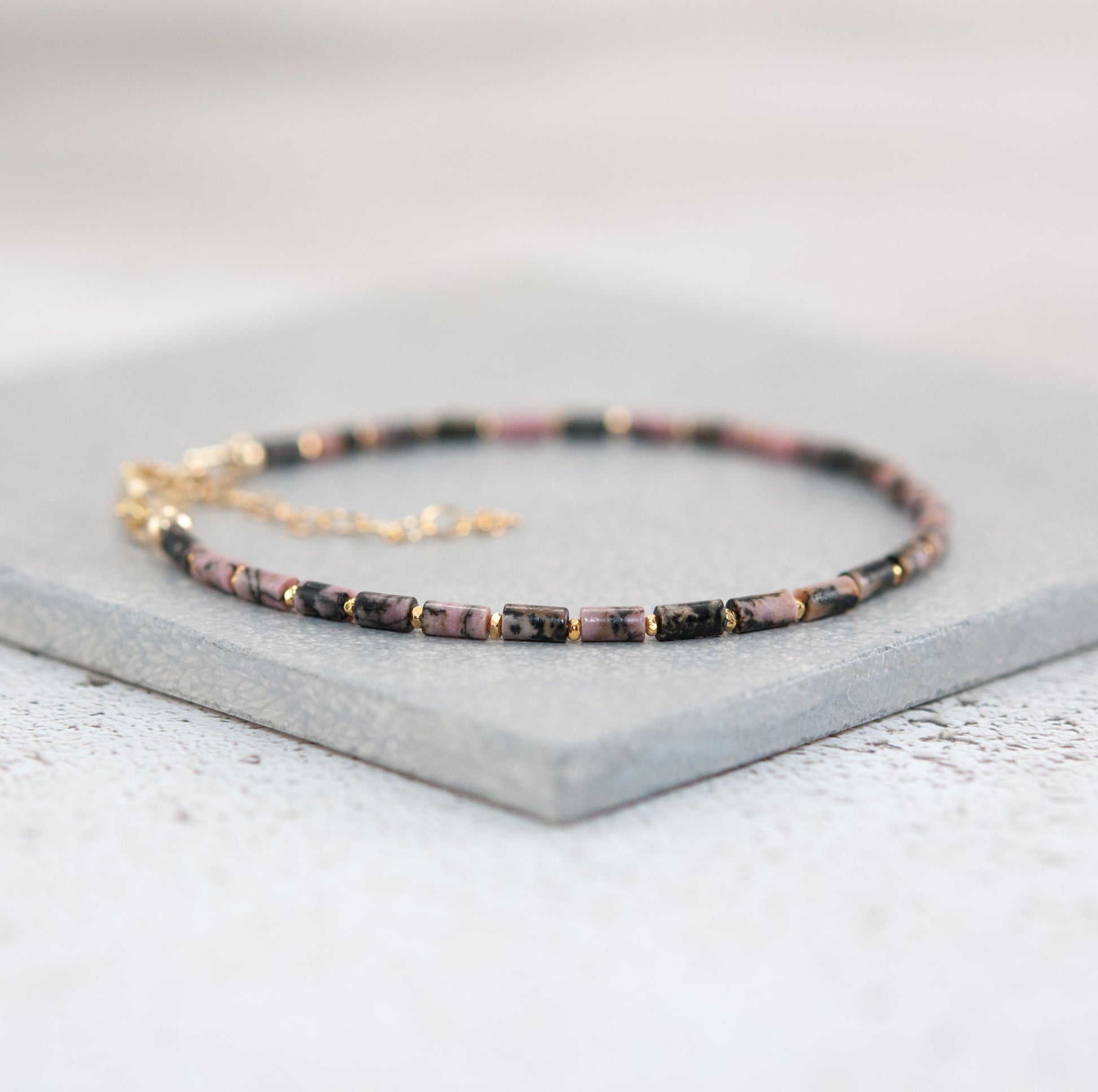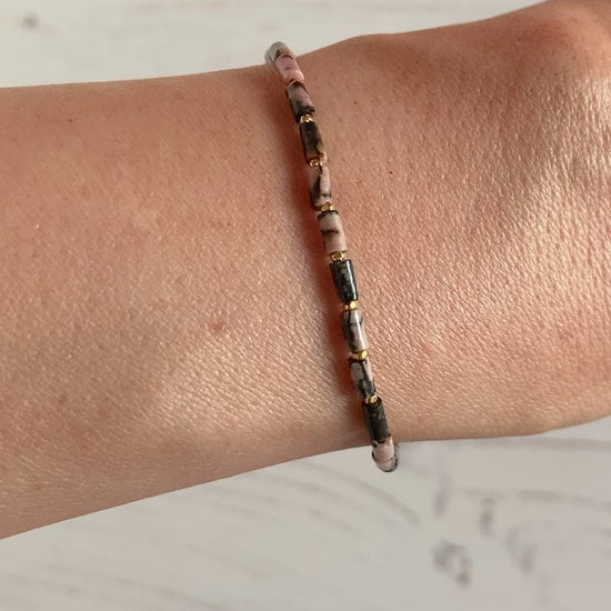 Dainty Rhodonite Gemstone Tube Bead Bracelet