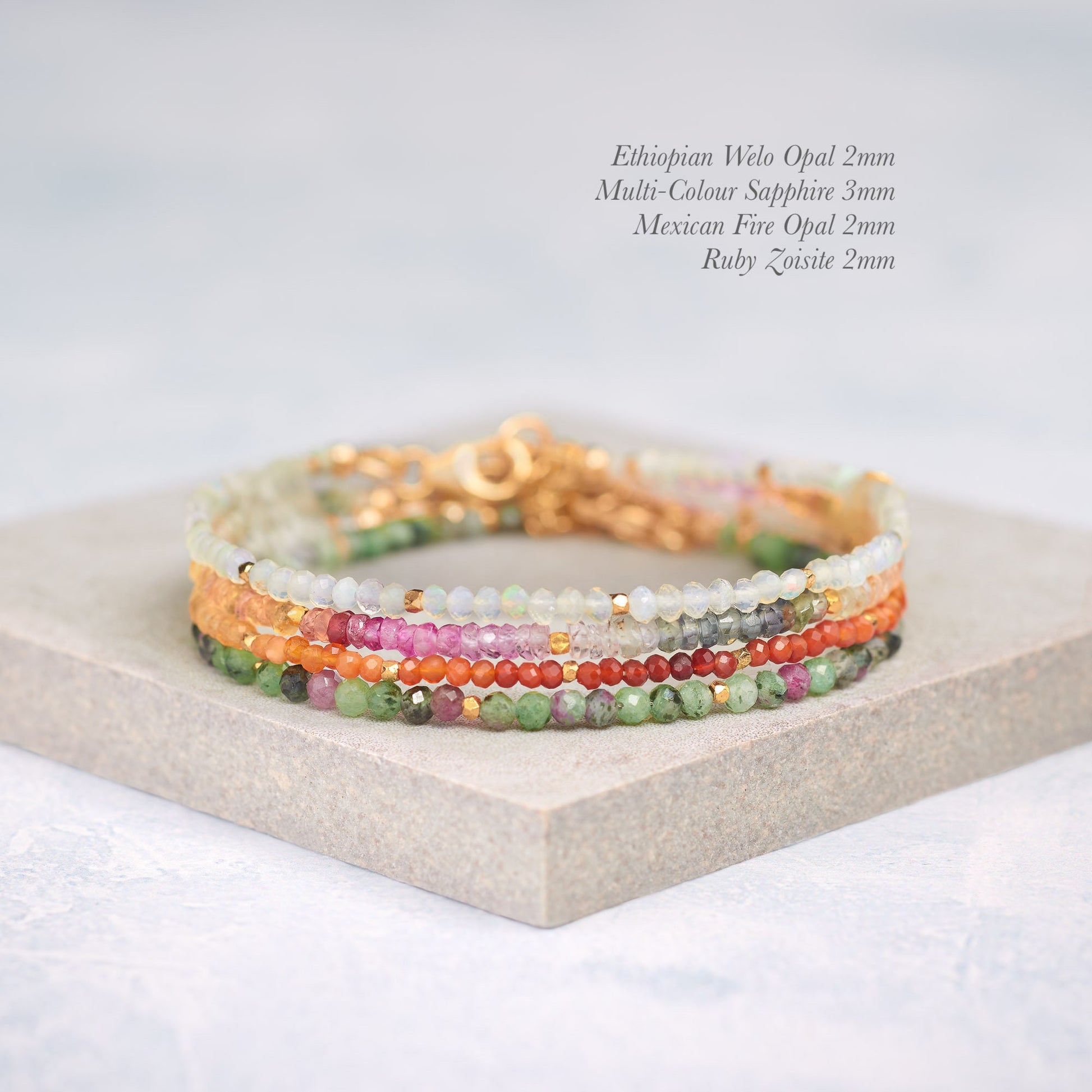 A very dainty and pretty little bracelet featuring genuine natural Ruby in Zoisite gemstones, interspersed with your choice of either 925 Sterling Silver or Gold Vermeil beads. Ruby Zoisite is an unusual stone, with veins of pink-red Ruby running through green Zoisite stone.