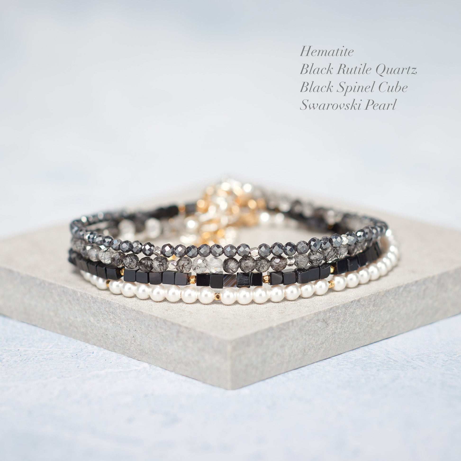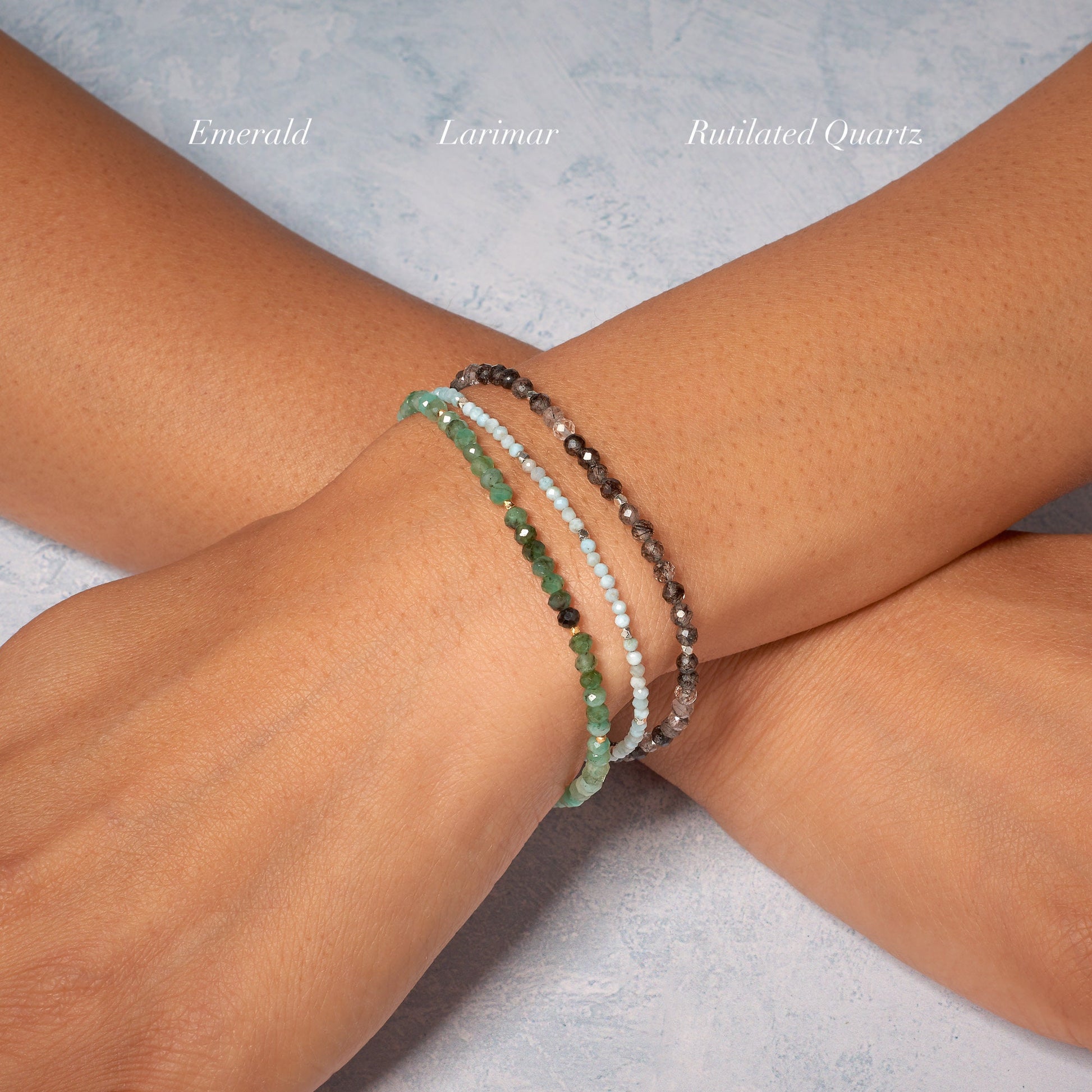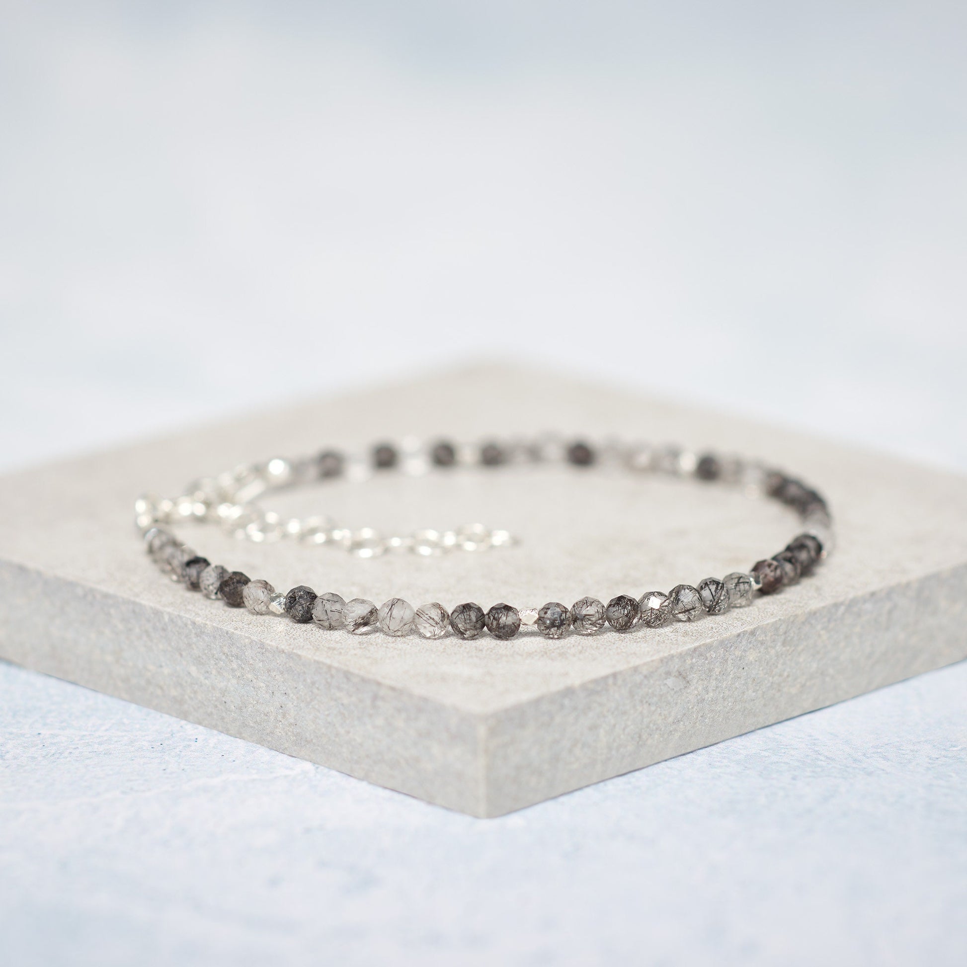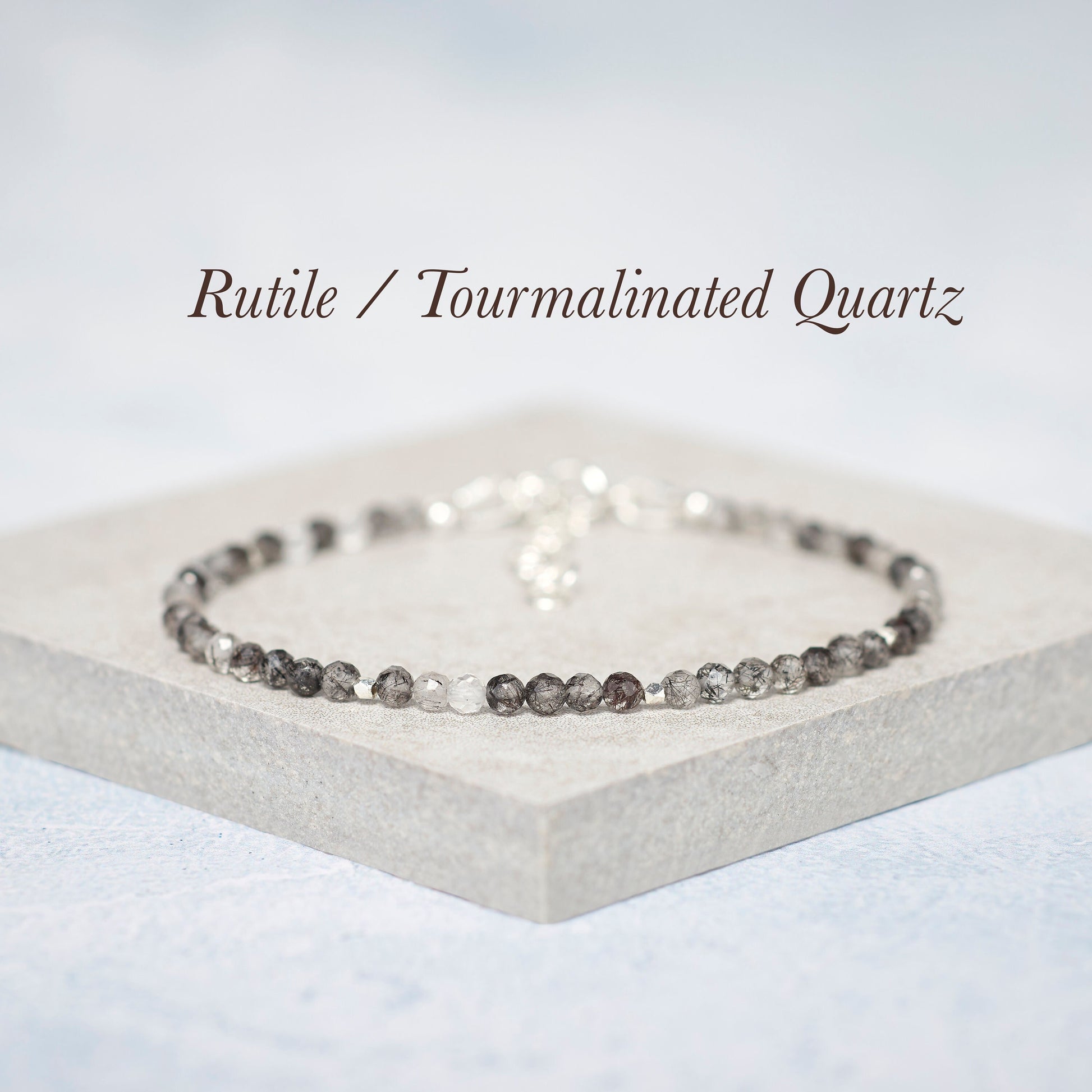 A super dainty little bracelet featuring genuine natural Tourmalinated Quartz gemstones, interspersed with your choice of Gold Vermeil or Sterling Silver beads.