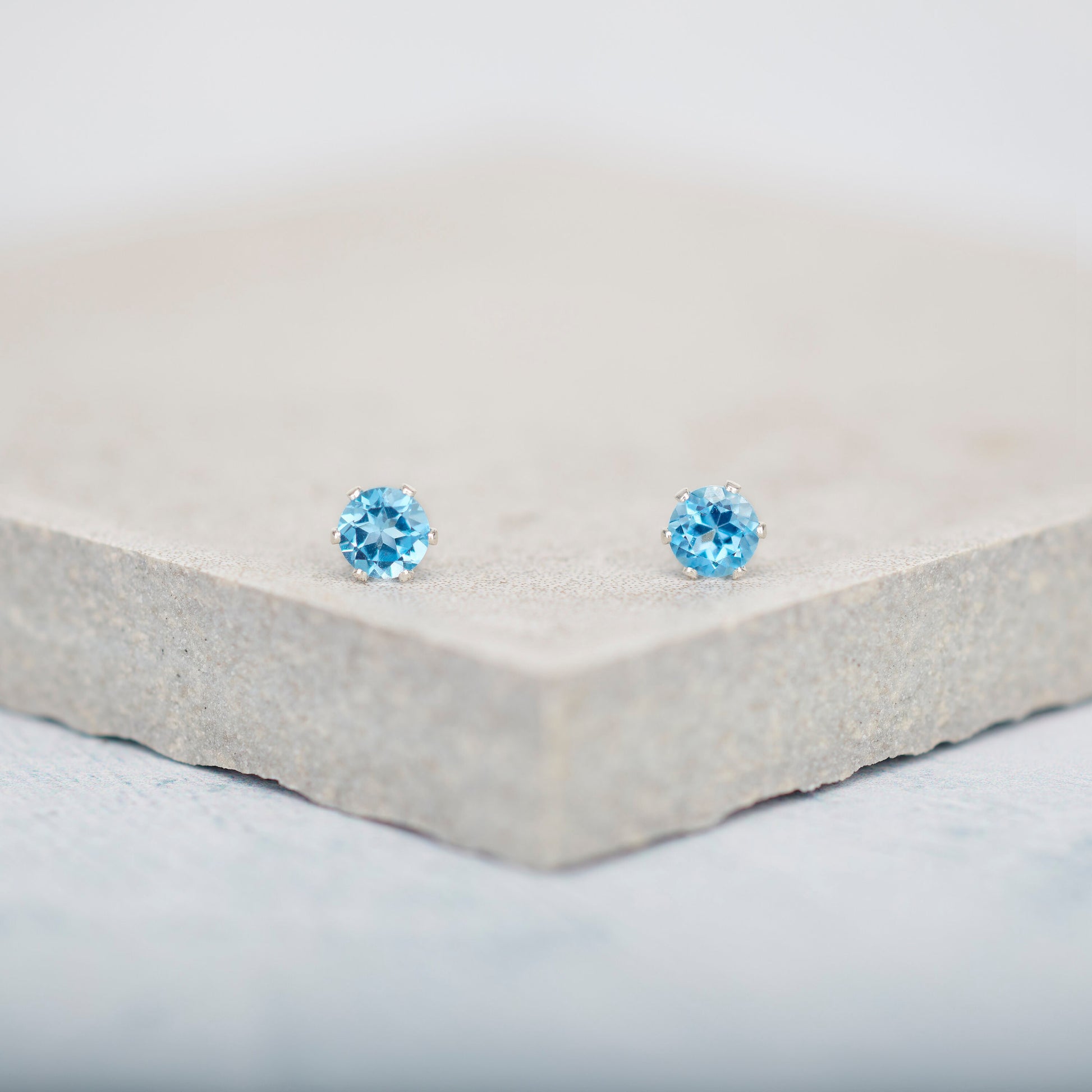 Beautiful genuine Swiss Blue Topaz gemstones sparkle within 925 Sterling Silver or Gold Filled settings in these dainty little stud earrings. Pretty, dainty and minimalist, and so easy to wear as a favourite everyday pair, the stones are faceted for maximum brilliance and sparkle.