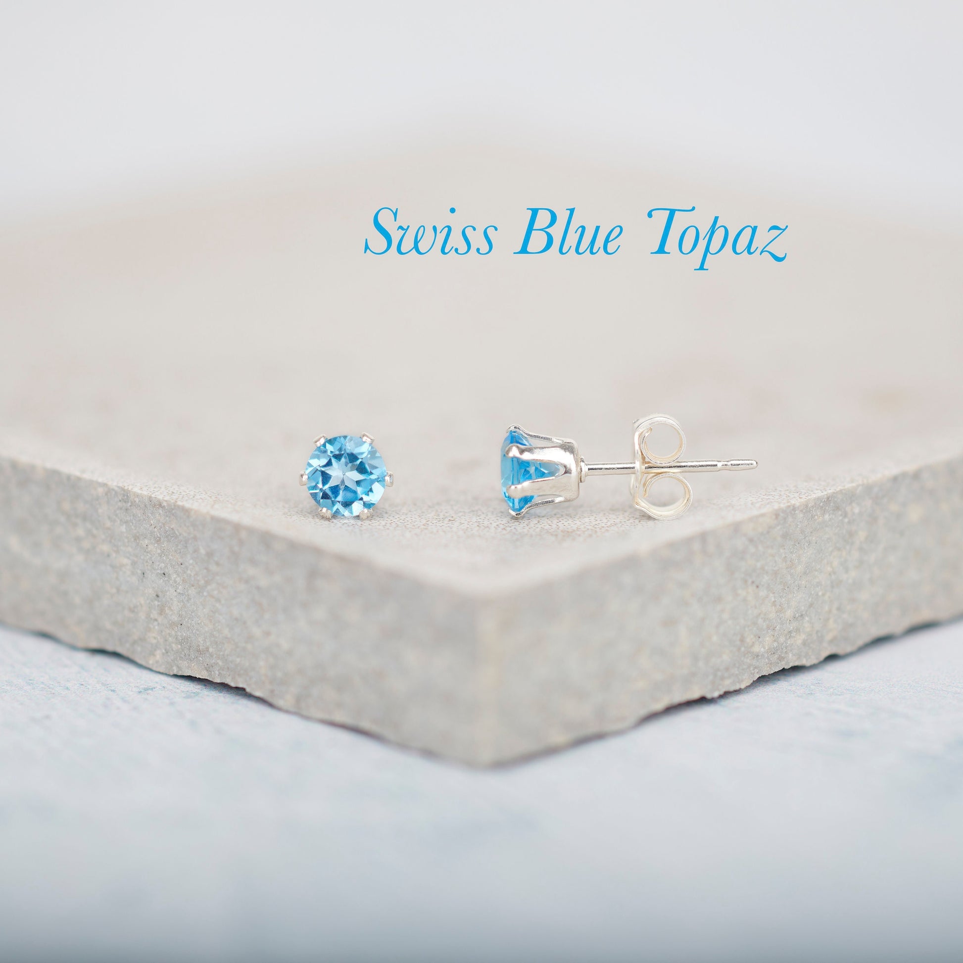 Dainty Swiss Blue Topaz Gemstone Stud Earrings, 4mm Genuine Blue Topaz & Sterling Silver/Gold Fill Post Earrings, December Birthstone Gift