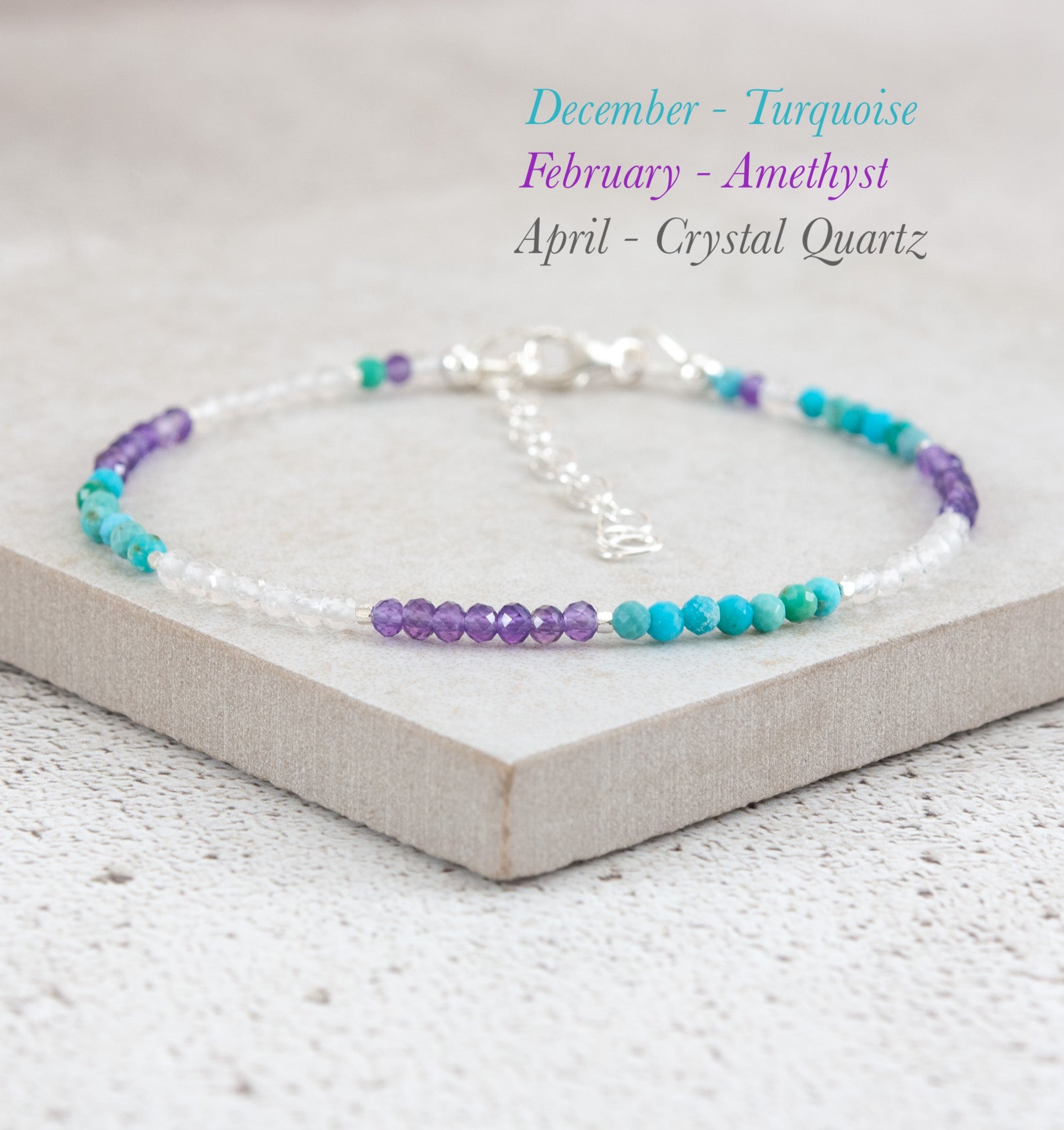 - Packaged in a gift box with information cards for each birthstone