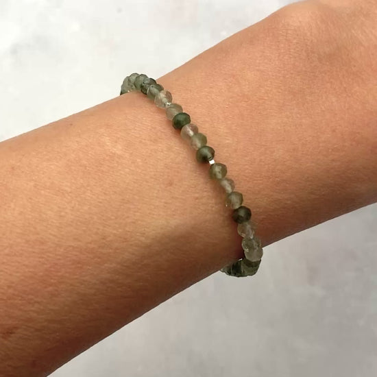 Subtly beautiful Green Moss / Rutile Quartz gemstones are faceted for excellent sparkle and interspersed with your choice of Gold Vermeil or Sterling Silver beads in this simple and natural bracelet. The stones have excellent clarity and a range of gentle green tones.