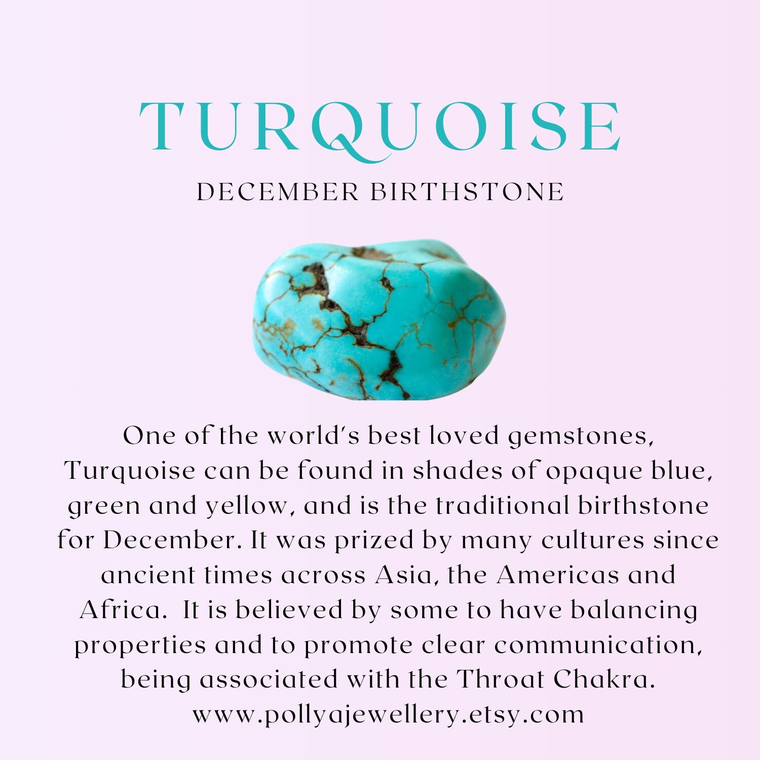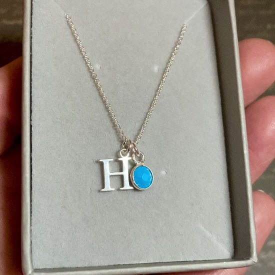 A highly personalised necklace with a genuine blue Turquoise gemstone birthstone charm and a 925 Sterling Silver letter threaded onto delicate 925 Sterling Silver chain. Turquoise is the traditional December birthstone. Delicate, dainty and pretty, this makes the perfect favourite everyday necklace, and a lovely personalised gift for anyone with a December birthday or who loves Turquoise.