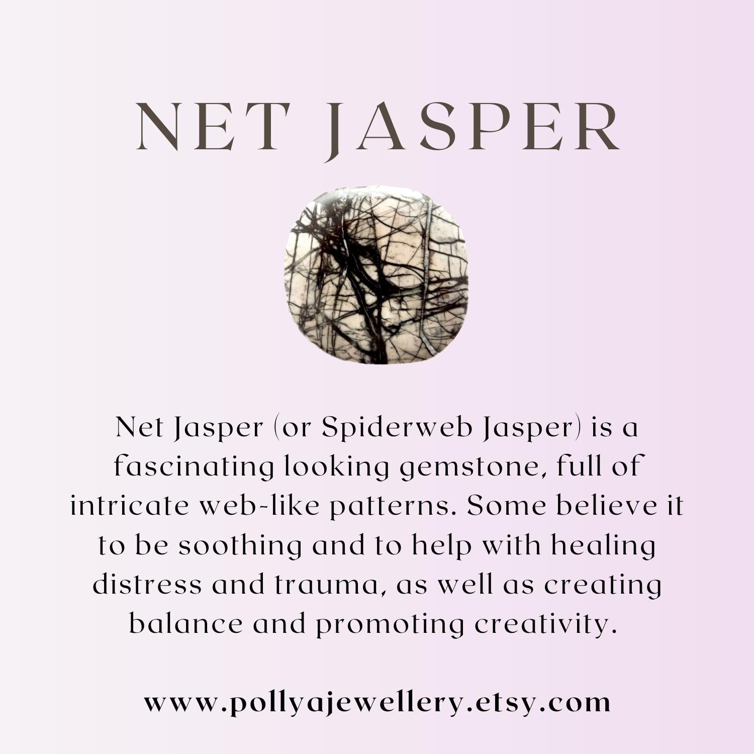 Net Jasper (or Spiderweb Jasper) is a fascinating looking gemstone, full of intricate web-like patterns. Some believe it to be soothing and to help with healing distress and trauma, as well as creating balance and promoting creativity.