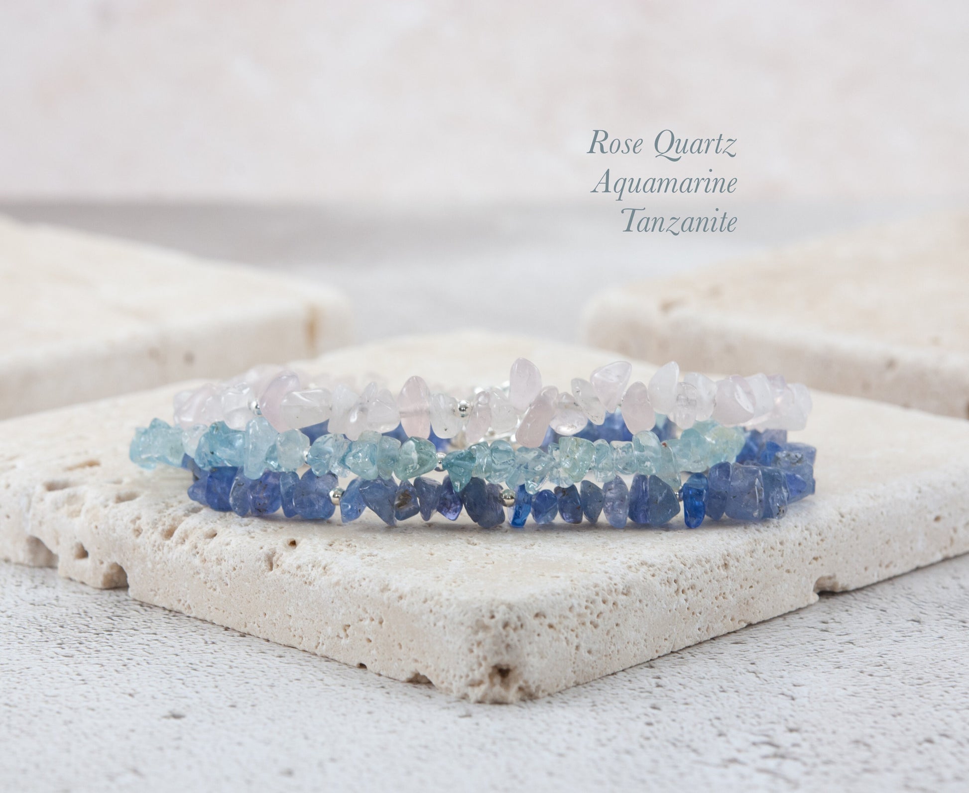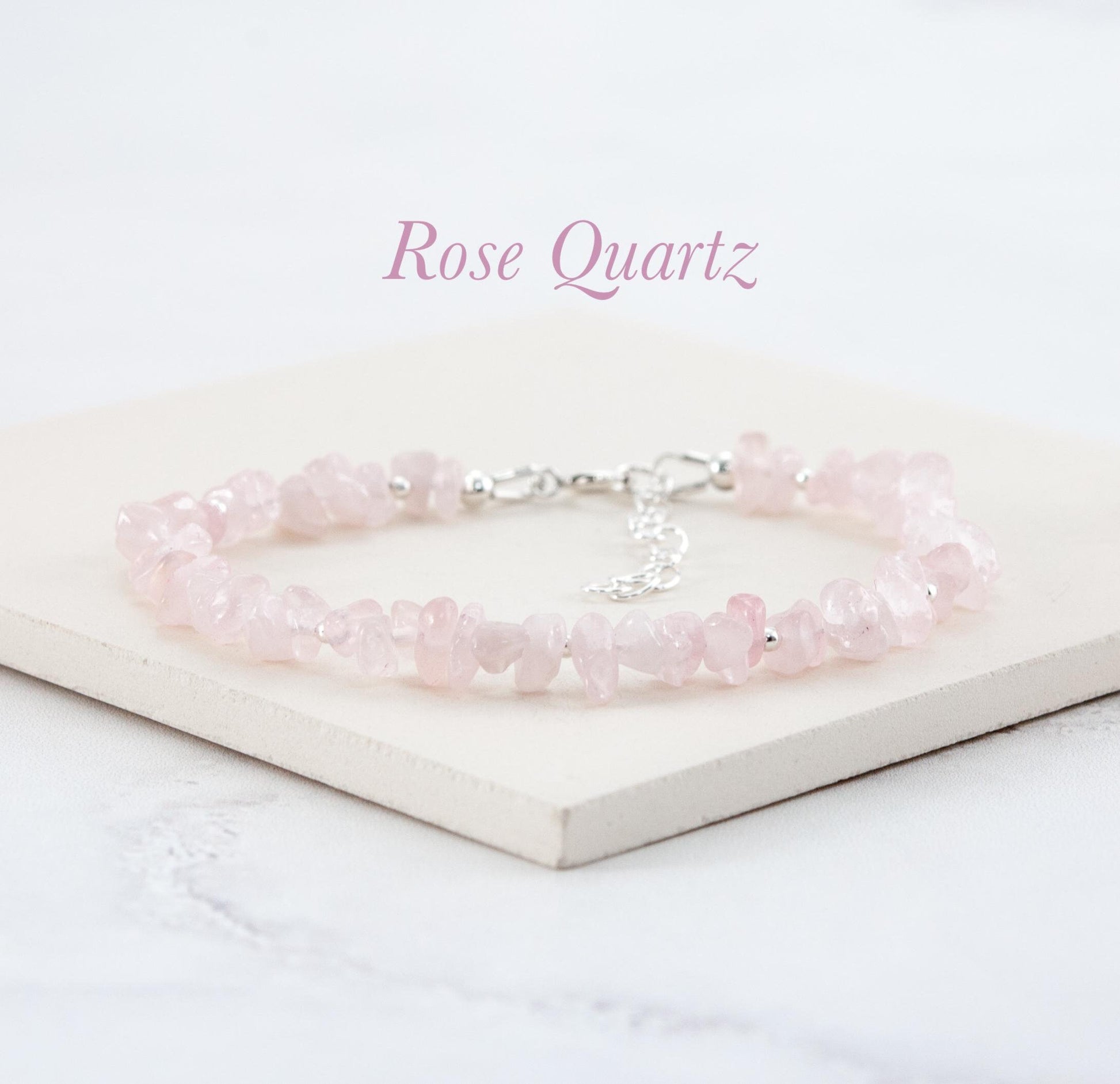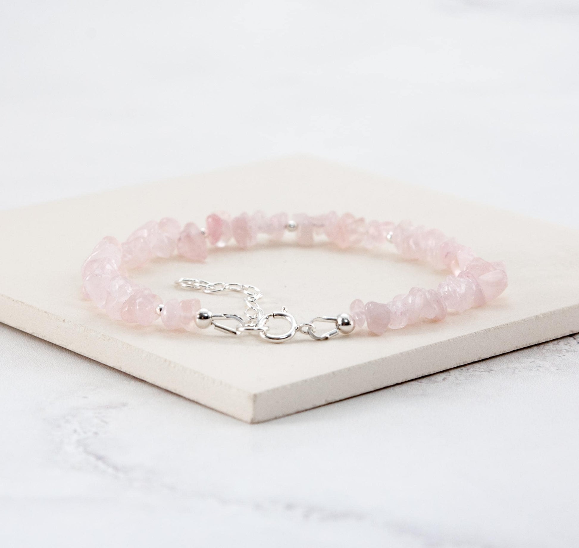 Soft pale pink Rose Quartz gemstone nugget beads are interspersed with your choice of tiny 14k Gold Filled or 925 Sterling Silver beads in this organic and natural looking little bracelet. Raw, rustic and completely natural, the chip & nugget shapes of the beads remind us that these gemstones are created by mother nature, whilst still delighting us with their soft pink colour and translucency. I have chosen the most dainty beads I could find to create a slender and elegant bracelet, perfect for wearing alone or stacking with other pieces.