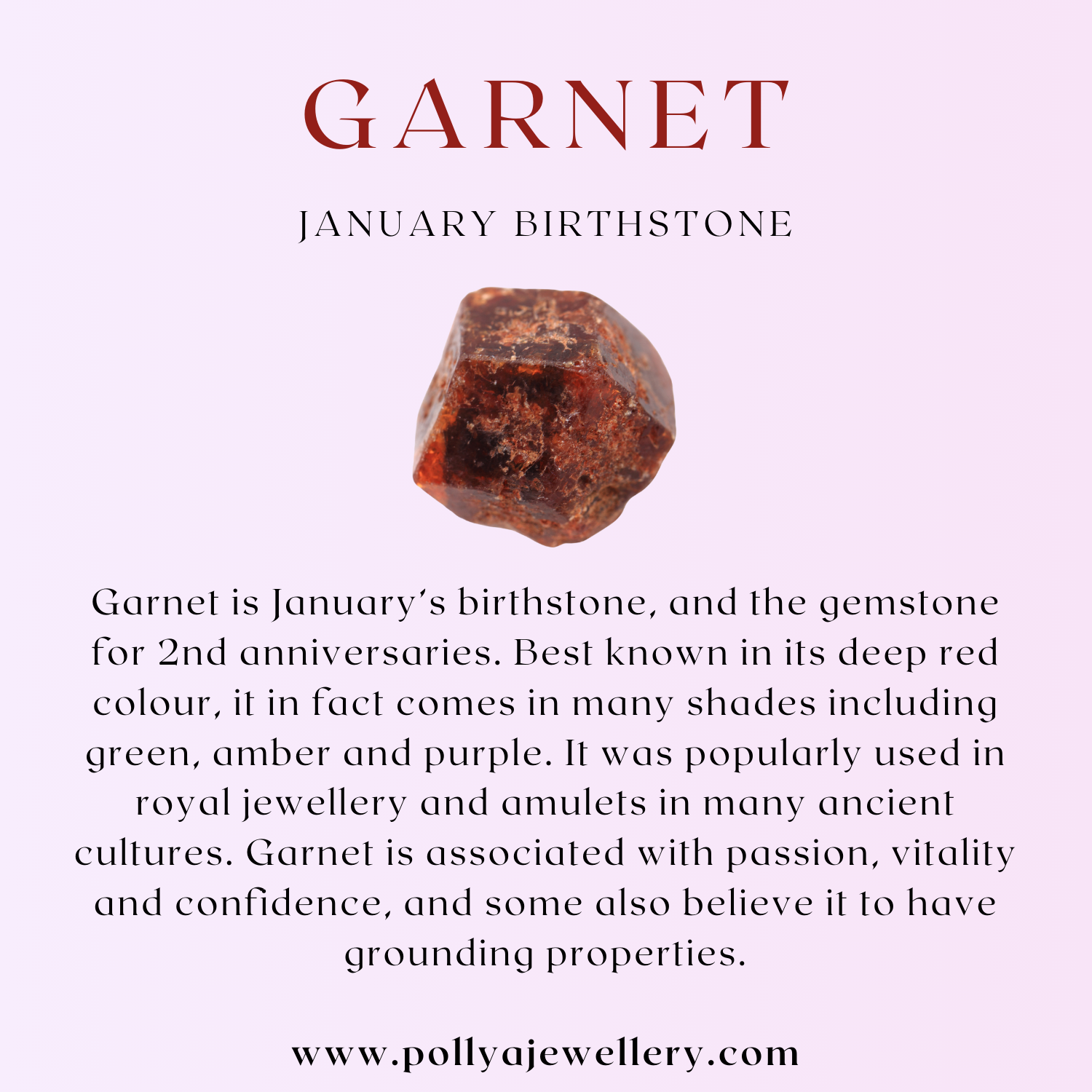 Garnet is the traditional birthstone for January, and the stone for 2nd anniversaries. Best known in its deep red colour, it in fact comes in many shades including green, amber and pinkish-purple. It was popularly used in signet rings in ancient Rome. Some believe Garnet to be a balancing, grounding stone.