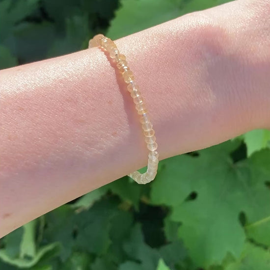 A set of three dainty gemstone stacking bracelets in a subtly pastel beachy colour palette of coral peachy pink Rhodchrosite, light lemony yellow Citrine and pale blue Chalcedony, paired with 14k Gold Fill or solid 925 Sterling Silver components. A more affordable way of building your stack of bracelets than buying individually, each bracelet will have its own clasp so you can choose how you stack and combine them.