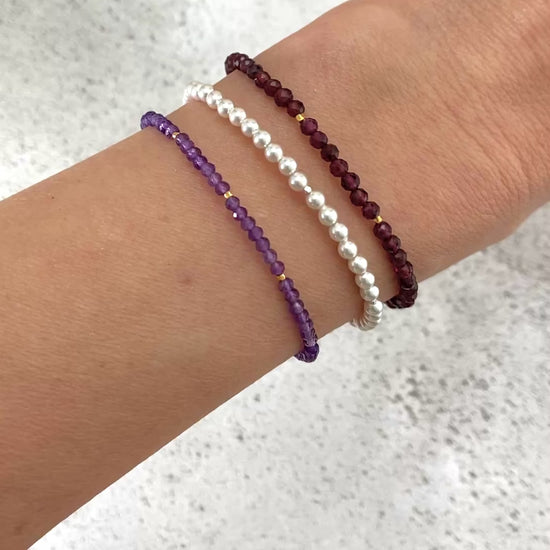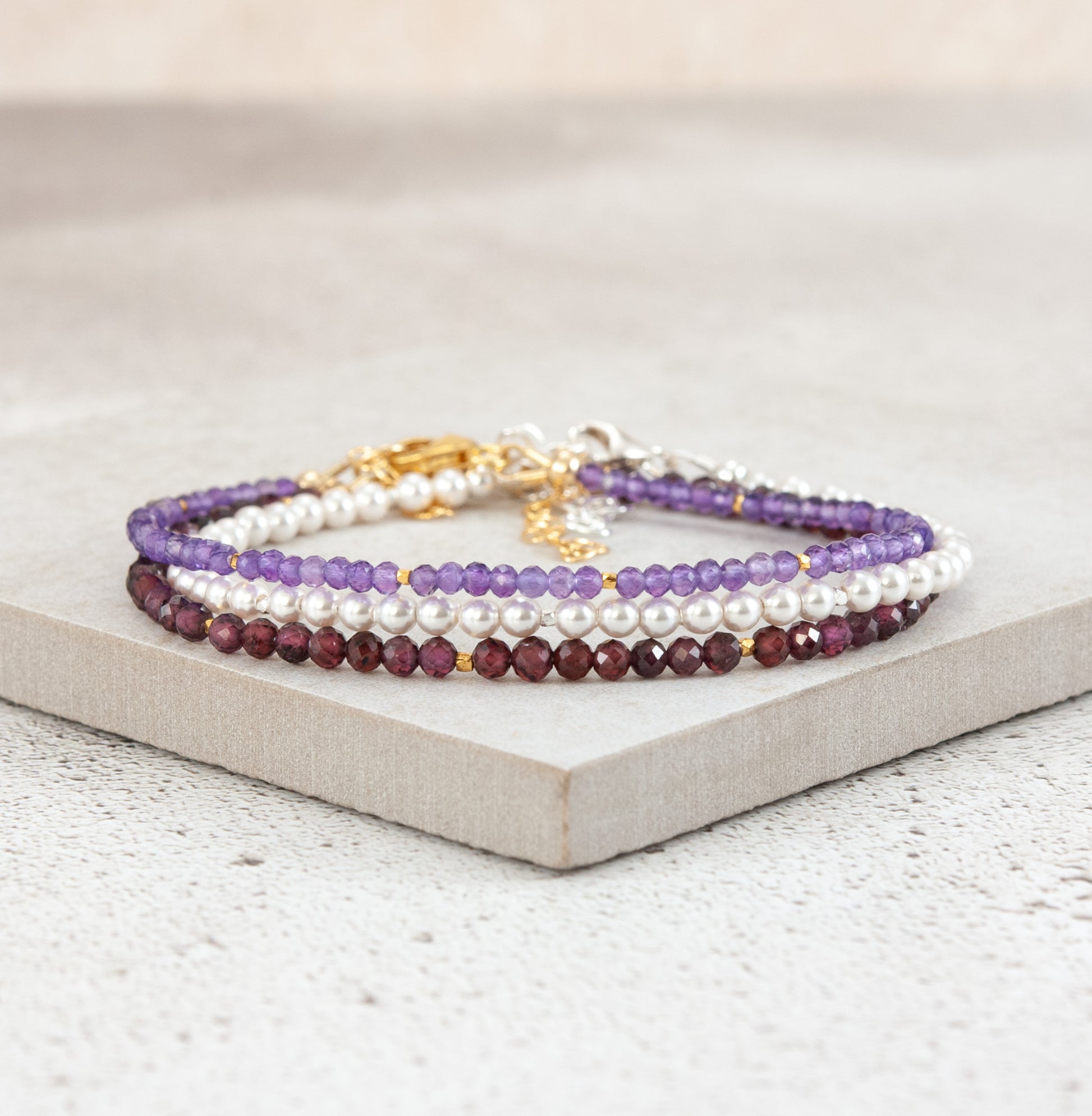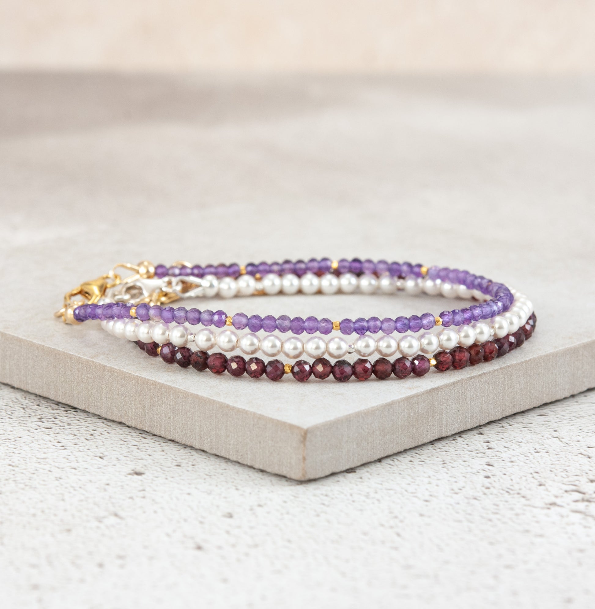 Set Of 3 Dainty Stacking Bracelets (Amethyst, Pearl & Garnet)