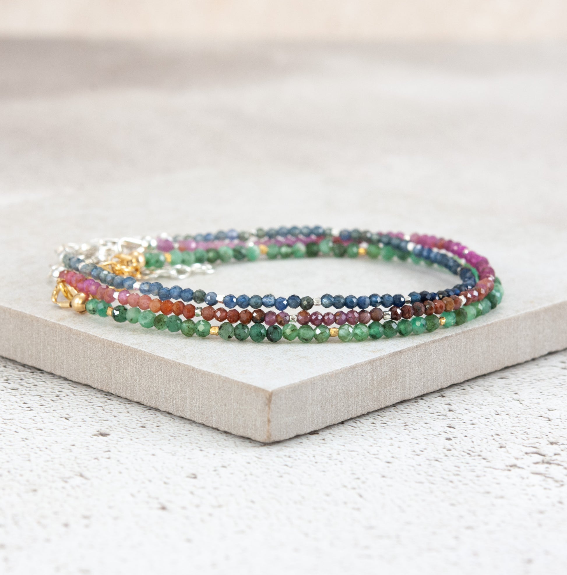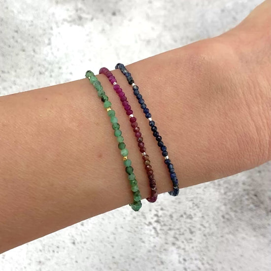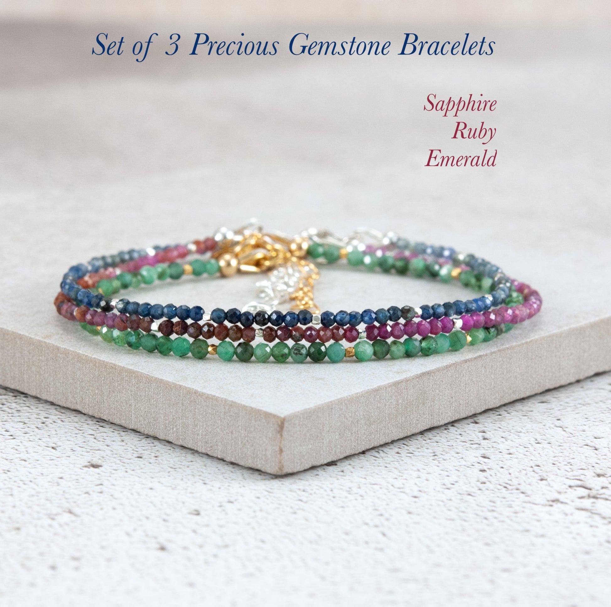 Set Of 3 Dainty Stacking Bracelets (Sapphire, Ruby & Emerald)
