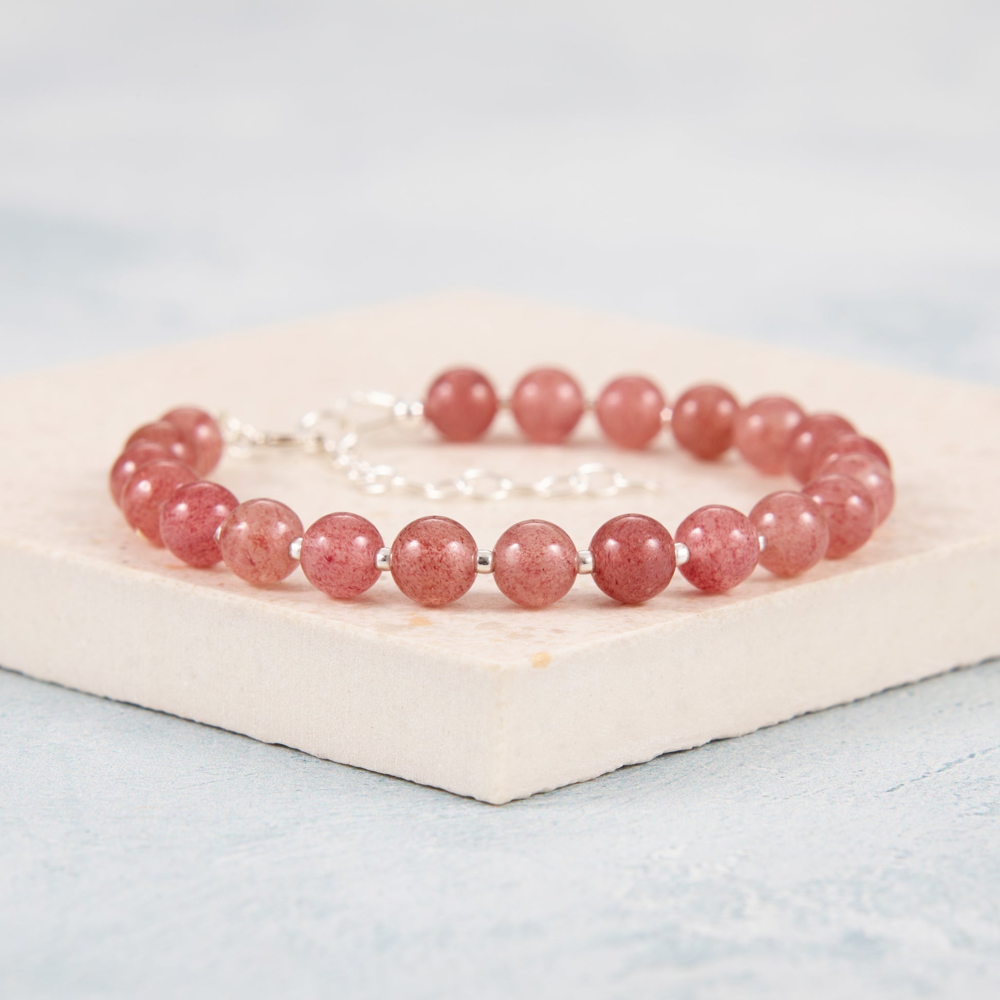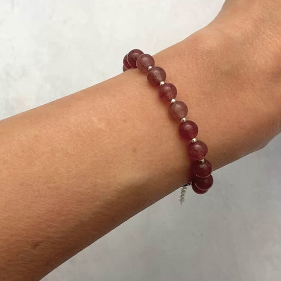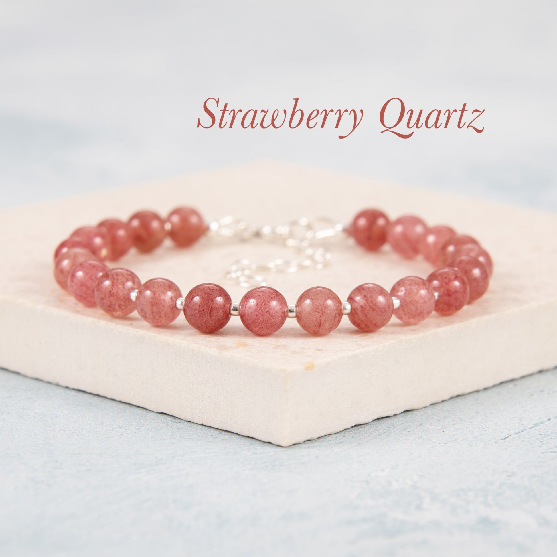 A very pretty bracelet featuring genuine natural Strawberry Quartz gemstone beads, interspersed with your choice of either 925 Sterling Silver or 14k Gold Filled beads. Lovely just for its natural beauty, or as a meditation, reiki or crystal healing aid.